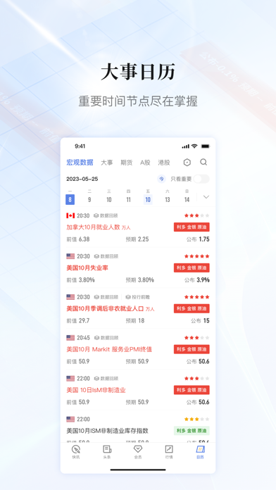 金十数据致力于成为国内专业的财经新闻软件和交易工具。提供全球7x24小时财经资讯,实时推送外汇、期货、A股、原油、贵金属、黄金、美股港股等财经快讯与行情报价,助力投资者更快更准地进行交易。 【财经快讯】 专属推送:自定义订阅内容,推送专属财经新闻快讯; 快讯分类:增加外汇、黄金、原油、美港股、A股股票和期货等快讯分类; 速度更快:坚守7x24小时财经快讯,致力于提供更快更全的金融市场消息。 【市场参考】 分类更精:为您分类鱼龙混杂的新闻,更贴近交易者的需求。 内容更优:金融市场一线头条新闻,深度优质财经好文,专业独家财经视频节目。 【行情走势】 新增商品外汇、A股与期货分类,交易品种覆盖更全!加入自选快速浏览所关注的品种。 【财经日历】 罗列每日重点财经数据或事件,开启定时提醒,重点交易行情不容错过。 【数据中心】 全球重要财经数据报告,新增自定义订阅报告功能,全新图表样式简洁清晰。 【视频栏目】 包括《伦敦交易者》《脱水期货》《海外交易员观点》《一杭说数据》《交易学院》等财经深度分析栏目,也有《嗨指数天团》《进击吧女神》《老板说的对》《数据可视化》等有趣好玩的泛财经视频栏目。 【其他】 金十数据在今日头条、新浪财经、一点资讯、搜狐新闻、网易新闻、腾讯新闻、UC新闻、百度新闻等热门新闻平台已有成熟的媒体号,每天同步更新优质原创财经新闻,捕捉新消息大事件,多渠道提供更全的财经资讯。 【联系我们】 微信公众号:金十数据 新浪微博:金十数据——https://weibo.com/igoldman 客服电话:020-89635666 客服QQ:800185710修复已知问题 近期更新: 1. iOS26桌面小组件适配 2. 快讯字体调整增加效果预览 3. 行情预警增加声音、光影提醒,支持连续提醒 4. K线增加倒计时 5. K线首屏支持左滑,不挡右侧指标 6. 行情横屏优化,K线区域占比调高 7. 其他问题修复和体验优化 使用中有任何问题或建议,请前往【侧滑页】-【意见与反馈】中告诉我们