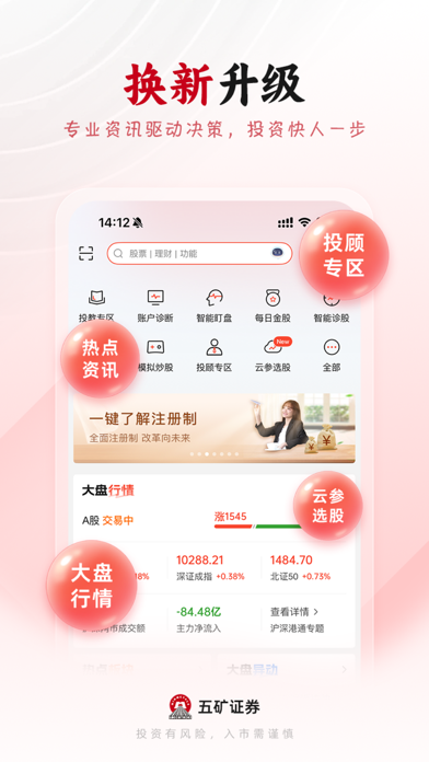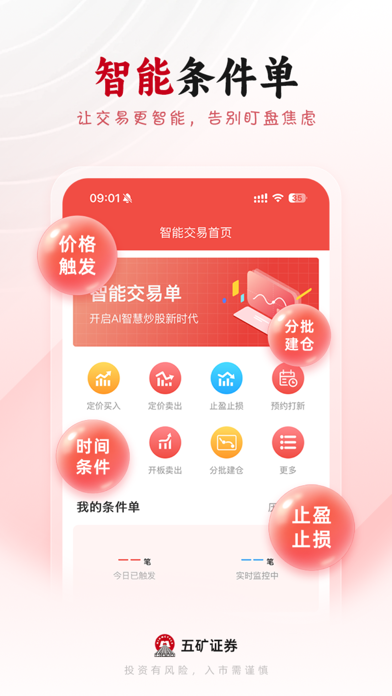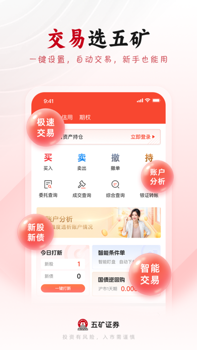 五矿证券App是五矿证券自主研发的移动端一站式理财平台,致力于为用户提供一站式专业化综合金融服务。它不仅是一款手机炒股软件,还提供了各种理财咨询服务。 五矿证券App集股票开户、证券开户、炒股交易、炒股开户、投资理财、股票买卖、基金交易、股票交易、业务办理、财经资讯及智能投顾为一身的股票/证券/炒股/理财/投资/财经/金融软件,同时也为新客户提供了便捷的开户申请入口,让所有来五矿证券的人都能享受一站式投资服务。我们为您提供极速的行情,安全的交易,权威的财经资讯、智能的投顾策略,是投资者的首选平台。 五矿证券是中国五矿集团有限公司(简称“中国五矿”,于2018年《财富》世界500强排名第109位)旗下金控平台,是一家综合类证券公司, 也是深圳首批荣获规范类券商资格的证券公司。 ①开户交易:3分钟在线股票证券开户,交易安全、方便、快捷 ②专业数据:极速覆盖全球重要市场行情 ,汇集新股申购、公司资料、投资研报等金融行业数百亿条数据 ③即时提醒:个股信息(公告、研报、数据)即刻更新,让您不错过任何一个捕获牛股的机会 ④闪电下单:指尖理财,买卖随心,真实还原实时主力大单,揭秘主力资金布局,股票、基金、债券等极速交易通道,委托方式灵活 ⑤智能工具:账户分析、相似K线、每日金股、智能诊股、选股宝、价格区间预测,从选股到分析,为您的每一次投资保驾护航 ⑥模拟炒股社区:投资牛人汇集、百万模拟金、高手模拟组合、模拟炒股大赛 ⑦智能客服:证券炒股问题全部一一为您解答,无需等待,全天应答 央企背景券商,开户佣金优惠,欢迎广大客户下载体验! 联系我们 微信服务号:WKZQ888 服务热线:40018-40028 官方网站:www.wkzq.com.cn修复了一些问题