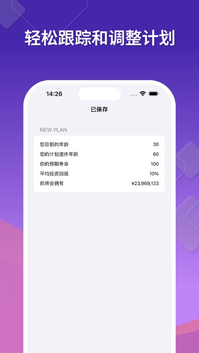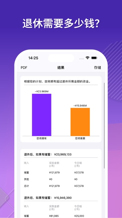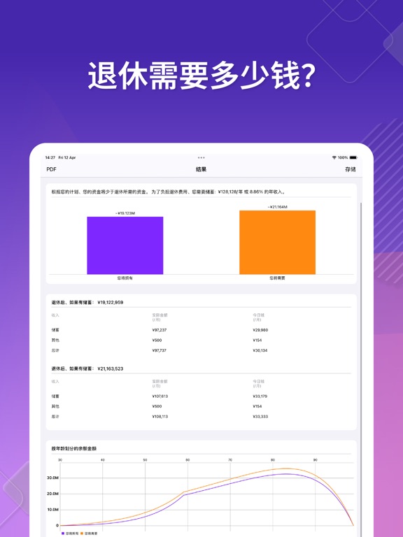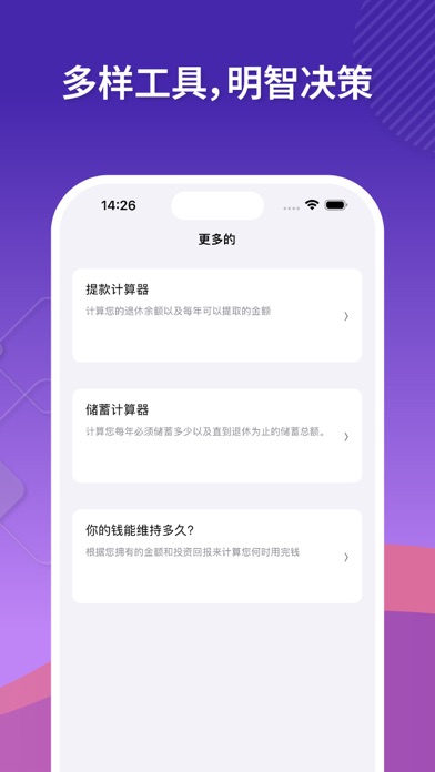 轻松规划您的梦想退休! 我们的应用程序旨在将您的退休梦想转化为明确定义的计划。 无论您是早期还是晚期开始,我们的应用程序都精心设计,以逐步指导您实现财务自由。 探索以下突出功能: - 准确计算:确定您需要多少资金才能舒适地退休以及您每月可以提取的金额。 - 个性化建议:量身定制的指导,调整您的储蓄策略,确保您实现未来的收入目标。 - 详细计划:提供您从现在到您生命结束的每年捐款和分配。 - 轻松跟踪和调整:我们的存储功能确保您始终走在通往财务自由的正确道路上。 - 简化步骤:访问基本工具,轻松导航您的退休道路。 立即下载并迈出通往轻松退休的第一步! 订阅信息 此订阅套餐为用户提供在订阅期内无限访问所有应用功能的权限。 • 付款将在确认购买时从 iTunes 帐户中扣除。 • 订阅将在当前周期结束前至少 24 小时关闭自动续订。 • 帐户将在当前周期结束前 24 小时内收取续订费用,并确定续订的费用。 • 用户可以通过在购买后转到用户帐户设置来管理订阅,并在购买订阅到该出版物时关闭自动续订。 • 如果提供,免费试用期的任何未使用部分在用户购买该出版物的订阅时将被没收。 隐私政策:https://13520178.github.io/RetirementCalc/policy.html 使用条款:https://13520178.github.io/RetirementCalc/terms.html 我们非常高兴为您服务。如果您有任何请求,请随时与我们联系。Bug fixes and performance improvements.
