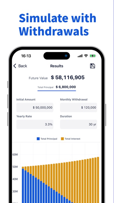 精准规划你的投资、储蓄与退休目标。 复利计算专业版(Compound Interest Professional) 是一款高精度的理财计算工具,让你轻松掌握资金增长与提取过程。无论是定期储蓄、长期投资、还是退休提取,它都能帮你即时反算收益率、所需年限或每期投入金额,并以清晰的图表呈现结果。 全方位理财计算 • 未来价值(Future Value): 输入本金、每期投入金额与收益率,立即计算未来总额。 • 提取模拟(Withdrawals): 模拟退休后每月或每年提取金额,查看本金与利息的变化趋势。 • 目标反算(Goal Seek): 想实现某个目标金额?反推每期需投入多少、需要多少年,或应达到的收益率。 • 所需年限 / 收益率: 输入本金与投入金额,即可得出达成目标的时间或收益率。 清晰可视化结果 • 图表与数据表清晰展示每期的本金、利息、余额变化。 • 支持比较:年复利 vs 月复利、储蓄 vs 提取、保守 vs 积极策略。 • 适合想通过“假设情境”了解不同投资计划效果的用户。 专业精度,简单操作 • 采用高精度小数计算,无舍入误差。 • 可设置年度或月度复利与投入频率。 适用人群 • 长期投资者与退休规划者 • 想学习复利与财务规划的学生或专业人士 • FIRE(财务自由、提前退休)群体 • 想要清晰掌握理财目标与收益进度的用户 示例场景 “每月投入 ¥2,000,年收益率 6%,20 年后会有多少?” “本金 ¥300,000,每月提取 ¥10,000,可以维持多久?” “若想在 25 年内达成 ¥1,000,000,需要多少收益率?” “提取固定金额时,账户余额何时为零?” 本应用仅为计算工具,不提供投资建议。 精准 · 专业 —— 为认真规划财务未来的你而打造。 使用条款:https://cicalc-74e14.web.app/en/info/#terms进行了轻微修复。