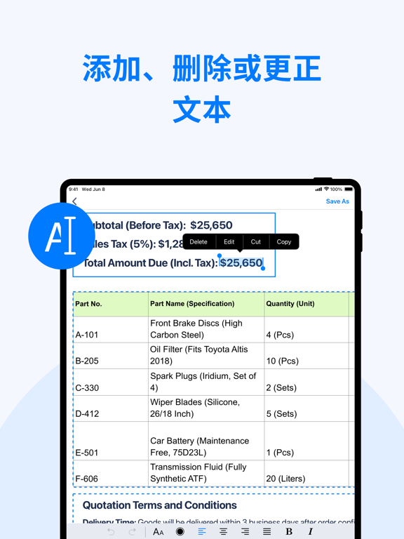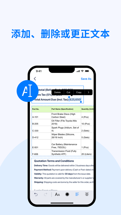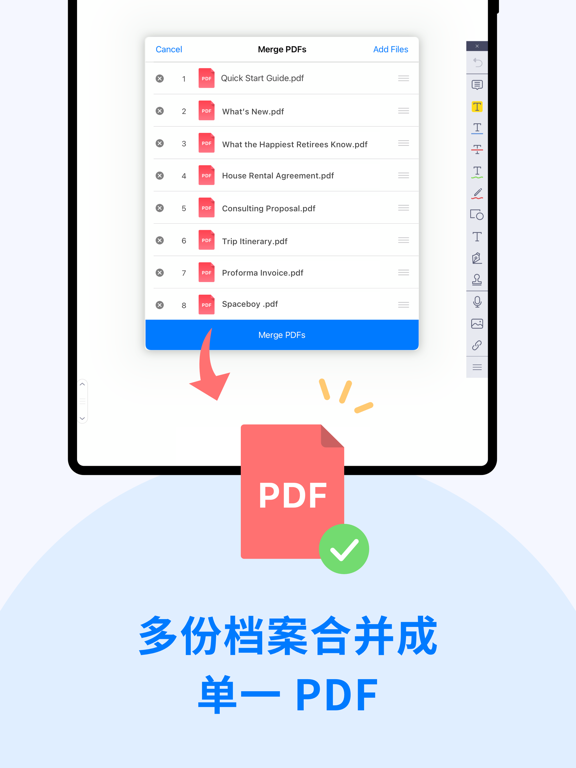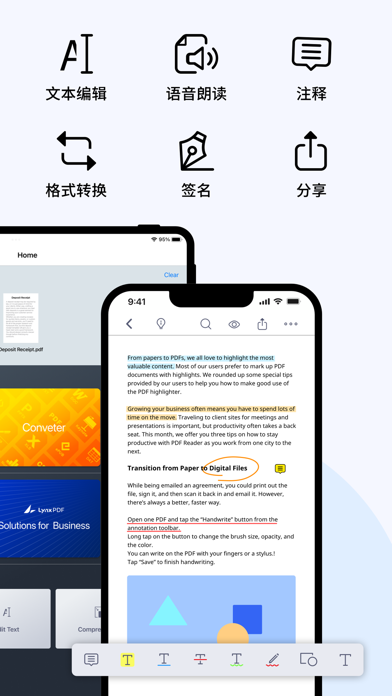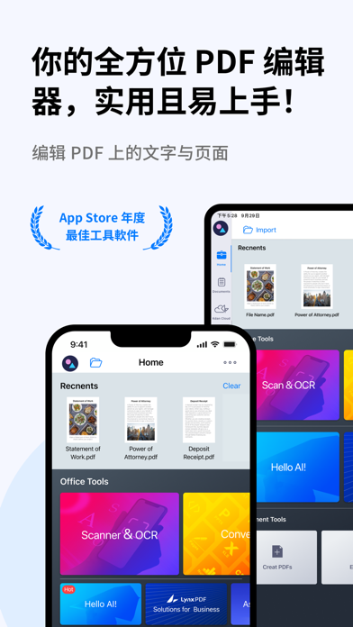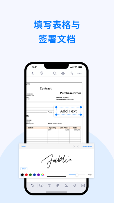 KDAN PDF(原 KDAN PDF Reader )是一款适合行动装置使用的app,让您随时随地轻松检视、编辑和管理PDF文件。此外,您还可以快速转档、签署或分享PDF文件。 您可以在 Mac App Store 下载 KDAN PDF,数百万用户信赖 KDAN PDF,因为我们提供了全面、高效的 PDF产品与服务,我们希望您也能喜爱这款应用程式。 获奖与推荐 - 荣获 iTunes 应用程式类别的「10 大必备工具」推荐 - 获得 FOSSBYTES 评选为「2019 年 iPhone & iPad 十大最佳 PDF 阅读器应用程式」 - 荣登 App Store Rewind「最佳公用程式应用程式」 主要功能 【PDF 编辑器】 - 直接在 PDF 文件上编辑并修正任何错字 - 合并多个档案为一个 PDF - 将大型 PDF 拆分为多个小型 PDF - 旋转、删除、添加及重新排列页面 - 从 PDF 中撷取页面或图像 - 更改 PDF 背景颜色 【PDF 转档工具】 - 支援线上与离线 PDF 转档 - 将 PDF 转换为 Word、Excel、PPT 及图像格式(如 docx, xlsx, pptx, jpg, png, gif 及 bmp) - 将网页和图像储存为 PDF 【OCR(光学字元辨识)】 - 辨识并撷取扫描档中的文字 - 将 OCR 结果汇出为文字档或可搜寻的 PDF - 支援 50 多种语言 【签署、表单填写、分享】 - 填写并编辑 PDF 表单 - 在 PDF 上签署 - 自订并管理签名 【档案分享】 - 从 KDAN Cloud、iCloud Drive、Dropbox、OneDrive、Google Drive、Evernote、FTP 或 WebDAV 客户端获取档案 - 压缩 PDF - 分享已压缩的 PDF - 直接从应用程式内发送传真 【PDF 安全性】 - 为 PDF 添加密码锁定 - 移除 PDF 的密码及限制 - 添加及移除 PDF 浮水印 - 读取 PDF 文件中的凭证及签名 【档案检视】 - 支援所有主流档案格式,包括 Vitrium* PDF 格式(例如凤凰城大学电子书) - 文本重排及自动流动 - 以简报模式展示 PDF - 以标签方式检视多个 PDF - 支援深色模式(仅适用于 iOS13 及 macOS Mojave 或更新版本) - 将文字转换为语音播放(文字转语音) 【PDF 注解与审阅】 - 支援萤光笔、底线、删除线、几何图形、文字方块和便利贴等多种注释工具 - 提供多种预置图章,包含 Approved、Sign Here、Confidential 等 - 可自定义图章,显示日期和时间资讯 - 插入超连结,可外连网页、跳至档案内指定页面、Email 信箱 - 可插入图片或是录音作为音效笔记 【管理注解】 - 将注释内容另存为 XFDF 格式 - 一键删除 PDF 内所有注释内容 - 获得 Techradar、Techworm 和 Softonic 的推荐 升级选项 DOCUMENT 365 免费试用 7 天,可在 Mac、iPhone、iPad 及其他平台上使用 KDAN PDF 的所有功能 - 年方案:7 天免费试用结束后,年费 USD 59.99 - 季方案:3 天免费试用结束后,每季收费 USD 19.99 - 月方案:3 天免费试用结束后,每月收费 USD 9.99 订阅将在您确认购买时通过您的 Apple 帐户扣款。您的 Apple 帐户将在当前订阅期结束前的 24 小时内,以相同的期间和目前的订阅价格自动续订。在订阅有效期内,无法取消当前的订阅。如需管理免费试用与订阅,请登入您的 Apple 帐户。 服务条款:https://pdf-reader.kdandoc.com/terms-of-service 隐私政策:https://pdf-reader.kdandoc.com/privacy-policy 联络我们:helpdesk@kdanmobile.com 或 https://support.kdanmobile.com全新名称与 Logo 来跟 KDAN PDF(原名PDF Reader)打声招呼!走过 15 年,感谢超过百万用户相挺。 KDAN PDF 未来将持续在 iPhone 和 iPad 上为你服务,协助你随时随地检视、编辑以及管理每一份 PDF 文档。 安全性升级 为提升安全,连续 180 天未使用的账户需重置密码。