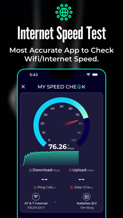 即时准确地检测您的实际网速。 您是否厌倦了缓慢的连接速度,并担心自己是否获得了应有的网速? 无论是 WiFi 还是移动数据,MySpeedCheck 都能帮助您精准地测量实时互联网性能。 只需轻轻一点,即可测试下载、上传、ping 值等。 了解您的网络速度是否足以支持流媒体播放、游戏或视频通话。 随时随地揭示网络性能背后的真相。 比较两个测试结果的详细信息。 立即开始测试,掌控您的连接。 执行网速测试,测量您的互联网性能。 测量您的准确下载速度、上传速度、抖动和 ping 值。 此外,还能轻松测量数据包丢失。 只需轻轻一点,即可开始测试,并启动快速测速,获取您的移动数据、WiFi 和互联网连接的实时结果。 有了这款应用,您再也不用担心无法准确测试网速了。无论您使用的是 Wi-Fi、4G 还是 5G 网络,或者正在使用移动数据,您都可以使用这款 WIFI 测速应用的多种工具轻松测试网络速度、检查连接质量并优化互联网性能。 我们提供多种工具来测试上传或下载速度,包括 ping 测试,让您可以轻松准确地在任何地方轻松无忧地检查网络速度。 主要功能: 以下是这款测速应用的一些重要功能,这些功能使其比其他免费应用更加突出和实用。 速度测试:这款 WIFI 测速应用可以让您准确地检查网络的下载和上传速度,确保您获得准确且最高的网络连接速度。 测试上传/下载速度:如果您只想测试下载或上传速度,可以节省您的时间和数据流量。我们将网速测试功能分为两类,以便您可以选择要检查的网络速度类型。 WIFI 速度和移动数据:您可以测试 4G 和 5G 的 WiFi 和移动数据速度,以确认准确的数据接收和发送速率。 网络和 Wi-Fi 分析器:每次测试都提供详细的结果,包括延迟和抖动,帮助您了解互联网或 WIFI 连接速度的质量。 测速器:您可以了解 Wi-Fi 和互联网速度的稳定性和质量,从而确定当前网络的使用方式,例如播放标清或高清视频、语音聊天、在线游戏、视频聊天等。 随时了解您的网络连接质量。如果您计划尝试新的互联网服务提供商 (ISP),请务必使用此测速工具来检查他们的网速。 立即下载此互联网测速应用,测试您的互联网和 Wi-Fi 速度,以实现流畅的浏览、流媒体和游戏体验。 隐私政策:https://softrixtech.com/legal/privacy/myspeedcheck.html 使用条款:https://softrixtech.com/legal/tos/myspeedcheck_subscription_tos.html最新更新内容: 1. 速度测试对比工具增强:可并排比较任意两个测试结果——现在还可以与好友或其他人分享详细分析! 2. 下载时间估算器:根据您当前或任何网速,即时计算下载或上传任何文件所需的时间。 3. 测试准确性提升:体验更精准的上传、下载和 ping 结果,每次都能获得可靠的速度测试洞察。 4. 即将推出的新工具:我们正在开发强大的功能,让您的网络测试比以往任何时候都更加智能——敬请期待!