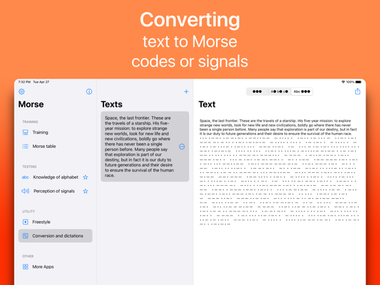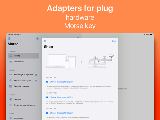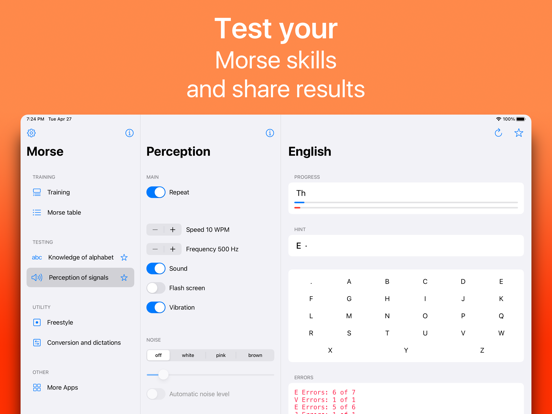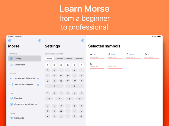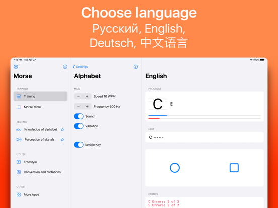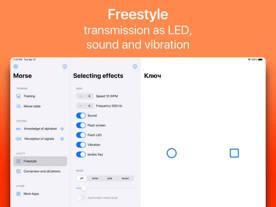 摩尔斯电码是一个用于系统键盘的应用程序,用于培训和学习摩尔斯码,以及加密消息的LED发射机。输入文本而不查看屏幕。字母表:德语,俄语和英语。 简单: 用专题为初学者培训,没有专业技能的提示。 在听力理解中培训,以及学习字母表的角色。 创建课堂上扮演检测的文本档案。 实时通过闪光灯,电话屏幕或声音传输LED码。 具有两种模式的键盘是暗和光线,具有输入速度设置。 莫尔斯字母备忘录,始终在手。 开关键盘语言:德语,俄语,英语。 应用: 它可以在武装部队,军队,海军或空军进行军队中使用。 或者,适用于业余无线电或电报站。 对于使用LED闪光灯的距离或SOS遇险警报的紧急通信。 用于学习摩尔斯代码,用于教学学生或人员。 用于发送秘密消息或简单加密。 它可以用作手电筒,聚光灯或闪光灯,在循环或手动模式下传输消息。 详细说明: 莫尔斯代码是用于学习和使用摩尔斯码的复杂,包含一个真正的键盘,用于通过摩尔斯码和培训技能的申请来快速文本输入。该应用程序包含用于将文本转换为摩尔斯码的实用程序,以及通过手机,屏幕或声音信号的内置LED闪光复制结果。 学生们: 该应用程序允许您以两种方式独立培训摩尔斯代码技能。第一个是听着感知。第二个是从内存中验证莫尔斯电码。通过交替两种方法,您可以在不多努力的情况下快速学习莫尔斯电码。 在每个培训课程中,有初学者的提示,这使得可以轻松地研究ABC并且不会留下培训模式。 培训包含大量的短语,使课程兴趣传播,不要快速疲倦。 培训结果保存在结果表中,能够在社交网络上与朋友分享最佳结果。 培训结果可用于自我评估摩尔斯码熟练程度和学习过程。 讲道: 实用程序允许您在飞行中将任何文本转换为摩尔斯码,具有查看和侦听的能力。允许通过邮件生成报告,添加到社交网络。 允许您保存转换结果以供将来使用和播放。 所有创建的转换都保存在列表中,以便快速选择控制检测。 播放速度可在宽范围内调节。 怀疑: 莫尔斯申请在群众的相似应用中的领导者中并不是徒劳的,它在各种在线出版物的评论中一再上了。 该申请是其最佳,适用于对摩尔斯码的独立研究,以及在大学和军校教学。 它真的允许您成功学习和教育摩尔斯代码的人。 申请购买: 如果您免费购买申请三天,然后,如果您没有取消订阅,则选定的付款类型将被扣除(周,月,年份)。在确认购买时将从iTunes帐户付款。除非在当前期间结束前至少24小时关闭,否则订阅自动更新。续订费用将在本期结束前24小时内收取费用。订阅可以由用户控制,可以通过在购买后进入用户帐户设置来禁用自动更新。在活动订阅期间,目前的订阅不会被取消。 隐私政策:https://static.macflash.ru/PRIVACY_POLICY_ZH 使用条款:https://static.macflash.ru/TERMS_OF_USE_ZHMinor changes in the shopping screen; Minor changes in the settings menu.