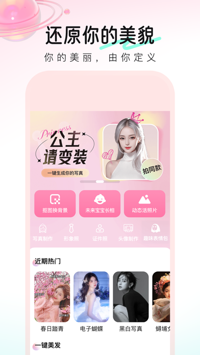 新颜相机是一款创意十足的设计图片制作软件,含盖丰富多样的功能,为你生活带来更有趣多样的体验。 特色功能 【换发型】 使用人脸识别技术及发型与人脸自适应匹配技术,帮您轻松尝试新发型。 【宝宝照片】 你可曾设想过你未来的宝宝的长相?你是否好奇你和你希望结婚的那个人的宝宝的模样?不用等待了,来这里帮你生成你们未来宝宝的样子。 【制作证件照】 傻瓜式操作智能抠图生成电子证件照,这里有更适合中国宝宝的新中国风证件照。同时升级了形象照写真照结婚登记照,还有美高证件照、韩系证件照、新中式证件照供您使用。 【动态照片】 让照片动起来,可以将老照片生成视频,生成逼真动画效果,一举一动如在眼前。 海量视频模版女神男神、单人婚纱、搞笑鬼畜视频、情侣合照、闺蜜艺术照、民族服装、唱歌对嘴型、国粹神剧、cos制服、早安励志等多种样式。 【一键抠图】 采用人工智能技术实现一键抠图换背景功能,既可以任意更换照片背景,又可以在同一张照片中显示您的多个人像副本。 【美图专题】 有海量的美图风格素材制作,满足节日氛围、复古美学、个性写真、民族风情、情侣合拍、生日大片、宅家云旅游等不同风格。 【订阅服务说明】 1、月卡: 价格:¥15/月 订阅周期:月 2、一次性月会员: 价格:¥16/月 周期:一次性扣费 3、年卡: 价格:¥38/年 订阅周期:年 4、终身会员: 价格:¥48 订阅周期:一次性扣费,终身使用功能 5、周卡: 价格:¥18,首周¥1元,之后¥18/周 订阅周期:周 付款:用户确认购买并付款后计入iTunes账户 【关于自动续费和付款】 1、付款:用户确认购买并付款后计入iTunes账户 2、自动续费:苹果iTunes账户会在到期前24小时内扣费,扣费成功后订阅周期顺延一个订阅周期 3、关闭服务:您可以在苹果手机"设置"-->进入“iTunes Store与App Store”-->点击“Apple ID”,选择“查看Apple ID”,进入“账户设置”页面,点击“订阅”,管理自动续订服务,如需取消,每个计费周期结束前24小时关闭服务即可,到期前24小时内则不再扣费。 【协议】 1、服务协议:https://yixiu.tuanduixiangce.com/useragreement_ios 2、隐私协议:https://yixiu.tuanduixiangce.com/privacypolicy_ios修改已知bug