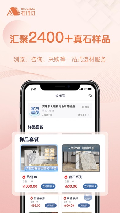 石切切APP依托链石科技智能制造实力,为设计师提供2万+高清大板、2400+真石样品、每日新增5万+设计素材的一款专为设计师选材而生的APP,协助设计师精准选材、高效索样、成品定制等。数字化全链赋能,为用户提供高效率、低成本的石材成品数字化定制服务。 【2400+真石样品】支持在线浏览、咨询、购买,选材、索样便捷化; 【2万+高清大板】汇聚全球2万+色彩、纹理清晰的优质大板图像,素材数据化; 【每日新增5万+设计素材】交付作品/设计案例/视频/全景等设计灵感素材丰富化; 【10万+设计师推荐】家装设计师极力推荐的专为设计师提供石材选材、索样、成品定制的数字化工具;- 修复一些已知问题