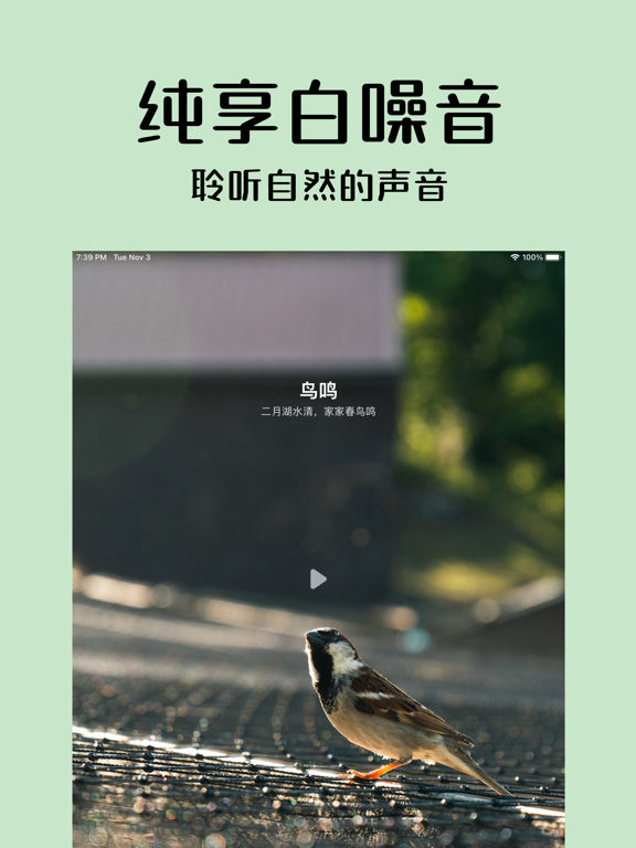 您是否每天都很忙碌呢? 您有多久没有仔细听听这个世界的声音了呢? 这个世界每天有成千上万种的声音,它们与我们共同存在着,存在到让我们忽略的地步。 可是停下来听听这些声音,带给我们的却是宁静与祥和 发现这个世界原来是那么的美好 能让人放下心里的浮躁 沉浸享受在当下 不再因为忧虑焦虑而无法安睡 让你能抛下这个世界的兵荒马乱 只为了自己片刻的自在 一起用有声 一起来聆听这个世界的声音吧~ 声音会定期更新的哦~ 欢迎大家下载 应用程序订阅: 您可以订阅以获得访问所有睡眠助手功能的权限。 一旦购买确认后,款项将直接从iTunes账号扣除 订阅期间您可以使用所有的操作面板,所有码库,和为期一年的更新内容 订阅会自动续期同之前的价格和期间(一年),除非在当前订阅期结束前至少提前24小时关闭自动续期 当前订阅期结束前的24小时内会根据您选择的期间(每年)从账号扣除续期费用 购买后,用户可在账号设置中管理订阅和关闭自动续期。 在有效订阅期间,无法取消当前订阅 "您可以透过iTune账户的订阅设置在免费试用期间来取消订阅。 请务必在订阅结束前24小时完成,以避免被收取费用。更多讯息請至:http://support.apple.com/kb/ht4098 " 您可以通过iTunes账号设置来关闭自动续期。无认如何您无法在有效订阅期间取消目前订阅。 免费试用期间任何未使用的部分将在购买会员订阅后作废。 服务条款和隐私政策請至以下连结: 隐私政策: https://littlenine.coding.net/s/7e1e49f3-f2ed-465d-ad76-df9e003d2090 服务条款: https://littlenine.coding.net/s/22fd16d8-f692-4051-bdb0-c8e18db8a066 价格等于《Apple的App Store定价表》规定的以美元计的订阅价格。- 增加了更多的专注场景以及睡眠白噪音素材 - 提升音乐播放的体验 - bug fix