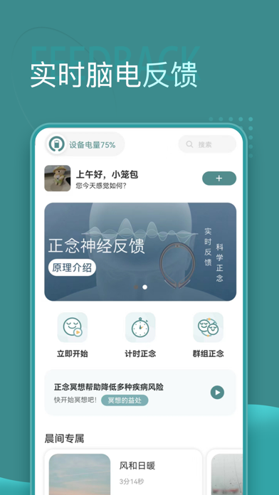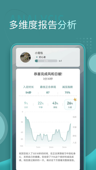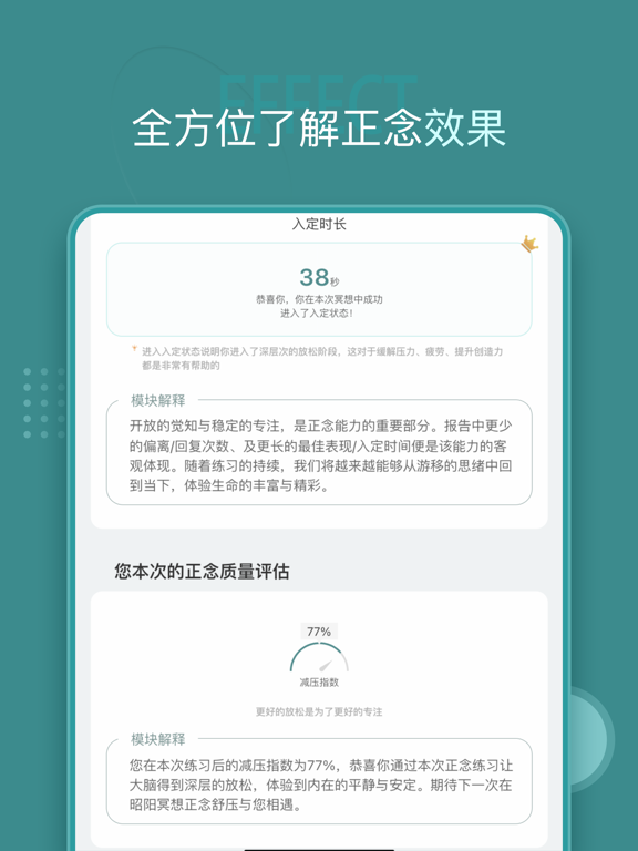 昭阳冥想是一款通过APP与脑电监测设备结合,集海量优质冥想课程、实施脑电反馈及多维度报告解析为一体,帮助更多的人学会冥想、科学放松、正念解压的综合方案。 【科学的正念方案】 昭阳冥想APP搭配精准的脑电检测设备,以智能冥想算法为引擎,准确判断大脑状态,提升科学量化的冥想数值,让用户深度了解自己的冥想效果,见证成长与进步。用户可自行选择正念时长,体验自主的、纯粹的正念过程,获取实时反馈。 【实时脑电反馈】 用科学感受当下。背景音效根据脑电活动实时变化,循序渐进地引导您进入正念冥想状态,让您轻松入门,掌握科学舒压、高效放松的诀窍,结束漫无目的的徘徊与费心劳苦的尝试。 【正念冥想课程】 舒压、助眠、专注,满足生活方方面面需求。引进海内外优质正念冥想课程,从起床到入睡,由入门到资深,满足多种场景需求,让您随时随地科学放松。无论您是初学者还是练习多年的冥想者,都可以在昭阳冥想找到适合的课程。随时随地,优质内容相伴。 【多维度报告解析】 训练完成后,您将获得包含不同维度解析的全面报告;用科学的数据分析您的正念冥想状况,记录追踪您的成长全过程,让自己成为更好的自己。 【注意】 昭阳冥想已接入HealthKit,可同步正念训练数据到苹果-健康app;