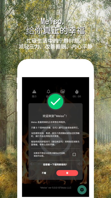 忙碌的日常中,想要找回身心平衡的你。「Meiso」 是一款从每天仅需5分钟开始,任何人都可以通过简单操作轻松使用的极简冥想计时器应用程序。当你感到情绪低落、忧虑、焦躁不安或者压力达到顶峰时,请打开这个应用程序开始冥想。只需按照指导反复调整呼吸,负面情绪就会逐渐消失,为你带来身心的安定和平衡。这款应用程序支持减轻压力、提升专注力和改善睡眠。 (注:虽然此应用包含去除广告和捐赠(支持开发)的付费功能,但所有功能均可完全免费使用。) - 推荐给以下人群 - ■ 冥想初学者,寻找简单入门方法的人 操作简单,只需按照指南进行,即使是初次接触冥想的人也可以安心使用。 ■ 对其他冥想应用不满意的人 实现了少见的 「昆巴卡呼吸法」 ,不同于其他应用,可以期待独特的效果。 ■ 希望缓解压力、找回心理平衡的人 通过昆巴卡呼吸法调整呼吸,可以稳定自律神经,减轻压力。 ■ 希望改善睡眠质量的人 睡前冥想可以提升放松效果,更容易进入深度睡眠。 ■ 希望提高专注力,提升日常生活表现的人 每天仅需5分钟,便可重启心绪,提升专注力。 ■ 希望养成冥想习惯,调整身心平衡的人 通过提醒功能轻松养成冥想习惯,从而调整身心平衡。 ■ 想在自然音中感受深度放松的人 可从14种自然音中选择,营造适合冥想的放松环境。 - Meiso的功效 - 「Meiso」 实现了冥想应用中少见的 「昆巴卡呼吸法」 ,只需按照指南调整呼吸,即可获得以下身心健康效果: ■ 减轻压力并增强免疫力 通过调整呼吸,稳定自律神经,使身心放松,从而减轻压力并增强免疫力。 ■ 提高专注力和心理稳定性 专注于呼吸,静止片刻,可以减少杂念,提高专注力,同时心绪更加平稳。 ■ 改善睡眠质量并增强心肺功能 缓慢的呼吸使身心放松,有助于进入高质量的睡眠。同时提高氧气利用效率,从而增强心肺功能。 ■ 什么是昆巴卡呼吸法(止息法)? “昆巴卡”来源于梵语,意为“保持”。这种呼吸法在完全吸气或呼气后,保留一段时间的呼吸“间隔”。通过暂时停止呼吸,对身体和心灵产生深刻的影响,带来内在的变化和平静。 - 为什么Meiso是最简单的冥想App? - ■ 直观界面,轻松冥想: 只需选择等级、铃声和时间,然后点击播放即可开始冥想,非常简单! ■ 引导式冥想,新手无忧: 屏幕上显示的“吸气”、“暂停”、“呼气”呼吸引导,可以自然地调节呼吸节奏。非常适合冥想新手。 ■ 忙碌生活中的短暂冥想: 每天只需5分钟即可开始。很容易融入忙碌的生活,让你在短时间内感到身心放松。 ■ 专注模式,屏蔽干扰: 我们的专注模式确保在冥想期间不会有通知或电话打扰。创造一个安静的环境,全身心投入冥想。 ■ 简单直观的界面设计: Meiso的简洁直观的界面设计,适合从儿童到成人等所有人使用。无需复杂设置或操作。 - 用户评价 - "怀着一丝希望开始使用这个应用,现在我的日常生活变得更加愉快。此外,我感到我的心肺功能得到了提升,爬山时呼吸更加轻松,非常感谢开发者!" "刚开始用时有一些不满意的地方,与其他应用进行对比后,向开发者提出了改进建议,如今这款应用已经变得非常好用,成为我理想的冥想工具!" "呼吸节奏和时间设置非常简单方便,跟随钟声呼吸也更容易集中,非常推荐!" "绝对是最适合冥想的应用!" - Meiso的特点 - 「Meiso」 是一款任何人都可以轻松使用的极简界面冥想应用程序。即使是觉得冥想困难的初学者也可以放心使用。 此外,还可以自由设置难度和时间,高级用户也可以根据自己的需求进行冥想练习。 ■ 每天仅需5分钟!轻松体验正念冥想! 「Meiso」实现了传统瑜伽中的 「昆巴卡呼吸法(止息法)」 ,通过简单的操作,即使是忙碌的人也可以轻松开始从5分钟的冥想体验。 ■ 简单操作,自由定制!适合从初学者到高级用户! 只需选择4个参数(等级、钟声、主题和时间),即可快速设置自己的冥想风格。 ■ 沉浸式体验,14种自然音效支持集中 与背景音乐不同,「Meiso」只使用钟声和自然音,为用户打造沉浸式自然环境。同时支持屏蔽来电和锁屏,专注冥想时不会受到干扰。 ■ 健康管理和习惯养成支持(仅限iOS版) 冥想时间会自动记录到健康应用中,并通过提醒功能帮助用户轻松养成冥想习惯,有助于日常健康管理。 - 常见问题(FAQ)- ■ Meiso适合冥想初学者吗? 是的。我们为初学者设计了一个简单直观的界面。即使是第一次冥想的人,也可以按照应用程序中的指导轻松开始练习昆巴卡呼吸法和冥想。 ■ Meiso是免费的吗? 是的。本应用提供广告去除和捐赠(支持开发)的付费功能,但所有功能均可以完全免费使用。 ■ 冥想时间可以设置多久? 用户可以自由设置冥想时间,从5分钟到最长17小时(999分钟)。无论是忙碌的日子还是有充足时间时,都可以灵活调整时间。 ■ 如何更改呼吸难度? 应用程序提供了从“入门”到“最高级”的7个呼吸循环难度选项。在开始冥想前,可以在等级设置页面中选择适合自己的难度。 ■ 如果不知道选择哪个呼吸难度怎么办? 对于初学者或第一次尝试冥想的人,我们推荐选择最简单的“入门”难度。习惯后可以逐步提高难度,无需急于挑战高级别。 ■ 冥想时可以播放音乐吗? Meiso不提供背景音乐,但支持选择14种自然音,例如溪流声、鸟鸣声等,营造更加放松的冥想环境。 ■ 如何避免冥想时被通知或来电打扰? Meiso可以设置屏蔽来电和通