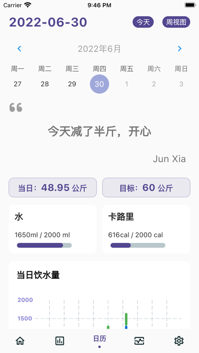 一款可以提醒并记录你喝水、饮食、体重、心率的APP。 丰富的图表能够将你每一天的各项数据展现的淋漓尽致。 支持iCloud备份重要数据。 水是生命之源! 每天都会在恰当的时机提醒你喝水,也希望你能及时记录下来,养成良好习惯。 每一天的所有饮水记录都会以图表的形式展现出来,超明晰! 手机也可以测心率! 只需要把一根手指放到镜头和闪光灯上,即可根据血液流动计算出你的心率,超爽有木有! 每天的心率可以保存,从而可以查看每日的心率变化。 测量结果仅供参考,请在使用此应用程序和作出任何医疗决定之前寻求医生的建议。 支持创建饮品及食物种类,可以更快捷的记录自己的饮食记录。 设定体重目标,APP可以为你记录每天的体重变化。 丰富的图表可以追溯到任意一段时期的体重变化。 日历功能! 你可以查看任何一天的所有数据,细化到每一次喝水每一次吃东西,超便捷。 每日寄语功能! 每天都可以记录一段话,记录今天成为更好自己的心路历程。 可以通过日历追溯每一天的每日寄语,超便捷! 【自动续费会员说明】 1、服务名称:水心记1个月会员自动续订 2、订阅周期:1个月,1年 3、订阅价格:3元/月,28元/年 4、付款:通过用户的iTunes账户扣款,用户确认购买后即付款。 5、续订:苹果iTunes账户会在到期前24小时内扣费,扣费成功后订阅周期顺延1个订阅周期。 6、取消续订:如需取消续订,打开苹果手机“设置” --> 进入“iTunes Store 与 App Store”-->点击 “Apple ID”,选择"查看Apple ID",进入"账户设置"页面,点击“订阅”,选择水心记会员取消订阅即可。如未在订阅期结束的至少24小时前取消订阅,此订阅将会自动续订。 7、会员服务协议:https://zbcdady.github.io/heart_vip.html 8、隐私协议:https://zbcdady.github.io/policy.html 使用建议,欢迎勾搭:zbcdady@gmail.com优化了实时动态的体验。
