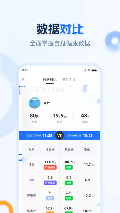 安馨健康APP通过蓝牙连接3021体脂秤,科学测量人体多项数据,随时记录体脂体重变化,搭配专业营养师定制营养餐单,倡导规律饮食,科学减重 【功能特色】 - 测量记录 3021体脂秤智能设备接入,记录并多维度分析用户的健康状况 - 历史数据对比 用户可选择历史上秤的天数来进行对比,便于用户查看自己的近期身体变化 - 数据图表 数据图表中的趋势图会直观的向用户展示最近上秤后的各项数据变化 【免责声明】 - 我们将尽力提供畅通无阻的在线服务,基于互联网的特殊性,安馨健康平台的网络接入服务可能受多种因素的影响出现链接受阻、受限或被终止,由此给您带来的损失、不便,除非我们有故意或重大过失,否则我们将不负任何责任 - 我们不对您所发布信息的保存、修改、删除或储存失败负责。安馨健康平台上的非因我们故意所导致的排字错误、疏忽等不承担责任、 - 因个人体质差异,我们不保证安馨平台提供的健康方案、健康评测等内容适合所有人,您应当根据自身健康状况和需求进行慎重选择,必要时请咨询专业医师 - 您同意在使用安馨健康APP时同意《用户条款》即视为您理解并同意,我们有权在不通知用户或不征得用户同意的情况下,直接删除安馨健康平台内的各类不符合法律规定或协议规定的内容 【访问授权】 安馨健康APP需要您授权访问以下权限,如果您没有授权相关权限,可能会影响部分功能的使用。 (蓝牙、照片、相机、位置、通知等权限) 【授权信息】 安馨健康APP包含的核心功能:(测量、深度报告、历史数据对比等)可能会收集、保存和使用下列与您有关的个人信息,如果您不同意安馨健康APP收集和使用您的相关信息,您可能将无法享受我们提供的相关功能或服务; 具体个人信息收集清单请点击下方“用户协议、隐私政策”链接进行查看 - 隐私政策:https://scale-api.annesclinic.com/web/client/agreement20221220.html - 用户协议:https://scale-api.annesclinic.com/web/client/use_protocol20221229.html 【联系我们&意见反馈】 - 官方微信:安馨集团 - 安馨健康APP官网:https://jiankang.annesclinic.com/ - 安馨堂公司官网:https://www.annesclinic.com/ 安馨健康 — 您的体脂管理助手修改已知bug 优化用户体验