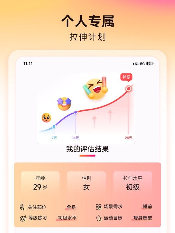 拉伸是一种有效的功能运动,随着年龄增长,身体灵活性和代谢水平逐步下降,易导致身体各项机能和皮肤状态变差。美国医学学会(ACSM)建议为了身体健康,每周至少做2-3次的拉伸运动。定期拉伸可以对身体有恢复、改善和再生的作用,每天5分钟,变美逆龄更年轻。 【拉伸的好处】 -瘦身塑形美化线条 拉伸不仅可以紧致肌肉、美化线条,告别肌肉腿和脂肪腿,还能够加速血液循环,提高基础代谢,让身体更加年轻有活力,清除体内垃圾,利于身体减脂排毒。 -打造完美体态 静态拉伸和动态拉伸相结合,开肩美背,改善体态提升气质,身形挺拔舒展、修长紧致,穿什么都好看。 -抗衰美颜 多种拉伸动作组合,能够灵活脊柱,按摩内脏,可以平衡内分泌、滋养卵巢,促进肝胆排毒、改善气血运行,滋养面部,提升身体灵活性和各项机能,全方位抗衰美颜。 -缓解疼痛 研究表明,拉伸可以增强肌肉关节的血液循环,帮助缓解并治愈疼痛,是一种天然有效的治疗方法,同时减少肌肉僵紧,让筋骨保持年轻韧性。 -增加柔韧性 随着年纪越大,肌肉和关节的力量就日益衰弱,拉伸可以帮助身体保持柔韧性,增强并稳固肌肉的强度和力量。 -避免受伤并提高运动表现 增加柔韧性和关节的灵活性对于健身运动和跑步是极为重要的,身体更灵活稳健和敏捷,运动表现更佳。运动前拉伸,放松肌肉和关节,预防抽筋和避免受伤的风险;运动后快速缓解肌肉酸痛。 -减压助眠 拉伸可以促进呼吸质量的提高,舒展身体能够释放精神压力,缓解焦虑,改善睡眠质量,精神能量饱满,从容应对生活中的各种压力。 【元气拉伸的亮点】 -多目标全场景覆盖 变美逆龄轻运动,晨间唤醒、晚间助眠、工作间放松、运动前后多场景覆盖,满足随时随地的变美需求。 -专属拉伸课程 根据你的身体条件和练习目标,生成个人专属拉伸课程,坚持拉伸,每天5分钟,变瘦变美变年轻。 -专业指导真人带练 专业老师视频带练,并配有语音口令指导,简单易学,沉浸式课程体验。 -简单方便0成本开练 无需器械,随时随地自由拉伸。 --------- 元气拉伸会员自动续费服务说明 「订阅周期」 连续包月:按月自动续费,每月扣费一次 连续包季:按季自动续费,每季扣费一次 连续包年:按年自动续费,每年扣费一次 「订阅价格」 以iAP申请信息为准,例如连续包月价格:每月48元,连续包年价格:每年188元 「付款」 用户确认购买并付款后,款项记入 iTunes 账户 「自动续订」 “连续包月/年”商品为自动续费商品,确认购买后,会从您的iTunes账户扣费。订阅将会自动续订,除非在当前订阅结束前至少24小时关闭自动续订在您订阅周期到期前 24小时内,苹果会自动从iTunes账户扣费,成功后会员有效期自动延长一个周期。 「取消自动续订」 如需取消自动续费,请手动在苹果手机「设置」--点击「Apple ID」,选择进入「订阅」页面,选择「元气拉伸」取消订阅即可 用户协议:https://www.dailyworkout.cn/fitness_user_agreement.html 会员及自动续费服务协议: https://www.dailyworkout.cn/fitness_member_agreement_serve.html 隐私政策:https://www.dailyworkout.cn/fitness_privacy_policy.html 联系邮箱: yqstretch@dailyworkout.com.cn --- 元气拉伸 - 越拉伸,越美丽1. 修复线上已知问题