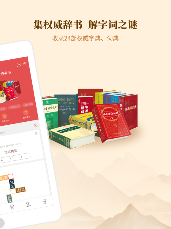 《新华字典》App,商务印书馆权威出品,中国社会科学院语言研究所编修。 新增"工具书云平台"模式,收录27部权威字典、词典,为用户打造查字词、成语、识字、拼音等一站式学习助手。 ◆权威辞书知识·国典匠心◆ •新中国首部现代汉语字典,汉字规范教育基石 •辞书集群典范之作:集成《新华字典》《现代汉语词典》《新华成语大词典》《新华词典》《古汉语常用字字典》《古代汉语词典》《商务馆小学生同义词近义词反义词组词造句词典》《汉语成语小词典》《商务馆中学生成语词典》《新华新词语词典》等27部权威字典、词典 •荣获第四届国家图书奖荣誉奖、第三届国家辞书奖特别奖、第三届出版政府奖图书奖提名奖 •双项吉尼斯认证:“最受欢迎字典”+“最畅销图书(定期修订)” •数字出版精品:累计下载量超1亿次,服务亿万学习者 •辞书查询智能融合:支持跨字典、词典对比释义,由检索词条拓展到相关词语 •汉字文化传承载体:从甲骨文到简化字,记录汉字千年演变 ◆全能学习宝库·智能教育◆ 【基础夯实】 •完整收录《新华字典》《现代汉语词典》等字典、词典最新版,涵盖汉字拼音、笔顺、部首、释义、组词全维度 •书写规范指导:动态+静态笔顺演示,支持屏幕临摹、跟写,书法启蒙利器 【拓展升级】 •27部权威工具书云端集成:《新华字典》《现代汉语词典》《新华成语大词典》等 【专项突破】 •多音字精讲+易错字汇编:扫清语文学习雷区 •近反义词智能辨析:写作表达精准升级 ◆趣味学习法宝·寓教于乐◆ 【汉字探秘】 •动态展示汉字演变:从甲骨文→金文→小篆→隶书→楷书全过程 •字形解构:象形、形声等造字法可视化解析 【诗词天地】 •覆盖小初高必背古诗词,配专业赏析注解 •文言文学习助手:通假字、虚词用法精讲 【智能闯关】 •字词接龙:成语链式挑战,拓展词汇量 •古汉语解谜:识字挑战,书法文化沉浸体验 •组词竞技场:易错字辨析挑战,强化表达力 【每日积累】 •个性化推送:易错字辨析+成语接龙+成语解密+组词接龙 •碎片化学习计划:每日推荐学习内容 ◆智能查词利器·科技赋能◆ 【纸书联动】 •扫码识别纸质书生字:笔顺动画秒加载,释义即时浮窗 【多模检索】 •支持语音输入、手写识别、部首检索、笔画检索、拼音查词、四角号码查词、拍照识别查词等 •智能纠错:模糊拼音精准匹配 【学习管理】 •云生字本自动同步:支持分类收藏+分级标记 •错题本智能生成:多音字、形近字专项训练 【智能助手】 •实时解答语文知识:字源考据、文言文翻译、诗词格律 •写作润色推荐:近义词精准替换、成语活用建议 ◆教育生态拓展·云端服务◆ 「工具书云平台」三大革新 专业分级体系 o学龄前→幼儿教育:识字卡+动画笔顺 oK12→基础教育:古诗词精讲+文言文精讲 o大学→高等教育:专业术语词典 ◆文化传承使命·国匠担当◆ •汉字保护工程:收录繁体字、异体字等 日新无已,望如朝曙。作为汉语教育的智能化载体,《新华字典》App已实现: •字典、词典内容扩容300% | 学习功能增至52项(识字、查成语、查拼音等) •覆盖学前教育至成人教育全周期 •「随身良师」:查汉字、识汉字、学拼音、学书法、诵诗词 •「国文智库」:解文言、查成语、积成语、习写作 教育之路无止境,我们以智能为笔,以文化为墨,续写汉字世界的「新生」与「传承」。 《新华字典》App,随时伴你身旁的“良师益友”。 【工具书云平台VIP-包月自动订阅服务说明】 1、订阅服务:工具书云平台会员连续包月(1个月) 2、订阅价格:连续包月产品为12元/月 3、付款:用户确认购买并付款后计入iTunes账户 4、苹果iTunes账户会在到期前24小时内扣费,扣费成功后顺延一个订阅周期 5、如需取消订阅,请打开苹果手机“设置” --> 进入“iTunes Store 与 App Store”-->点击 “Apple ID”,选择"查看Apple ID",进入"账户设置"页面,点击“订阅”,选择 工具书云平台会员连续包月 取消订阅。如未在订阅期结束的至少24小时前关闭订阅,此订阅将会自动续订。 6、会员服务协议:https://about.app.cp.com.cn/autopay_service_terms?f=21003 7、自动续费协议:https://about.app.cp.com.cn/autopay_agreement?f=21003 8、隐私协议:https://about.app.cp.com.cn/privacy?f=21003 9、使用条款(EULA):https://www.apple.com/legal/internet-services/itunes/dev/stdeula/ 【工具书云平台VIP-包年自动订阅服务说明】 1、订阅服务:工具书云平台会员连续包年(12个月) 2、订阅价格:连续包年产品为128元/年 3、付款:用户确认购买并付款后计入iTunes账户 4、苹果iTunes账户会在到期前24小时内扣费,扣费成功后顺延一个订阅周期 5、如需取消订阅,请打开苹果手机“设置” --> 进入“iTunes Store 与 App Store”-->点击 “Apple ID”,选择"查看Apple ID",进入"账户设置"页面,点击“订阅”,选择 工具书云平台会员连续包月 取消订阅。如未在订阅期结束的至少24小时前关闭订阅,此订阅将会自动续订。 6、会员服务协议:https://about.app.cp.com.cn/autopay_service_terms?f=21003 7、自动续费协议:https://about.app.cp.com.cn/autopay_agreement?f=21003 8、隐私协议:https://about.app.cp.com.cn/privacy?f=21003 9、使用条款(EULA):https://www.apple.com/legal/internet-services/itunes/dev/stdeula/ 【新华字典-涵芬VIP自动订阅服务说明】 1、订阅服务:涵芬VIP会员连续包月(1个月) 2、订阅价格:连续包月产品为12元/月 3