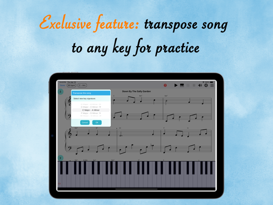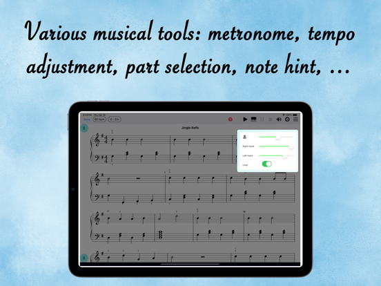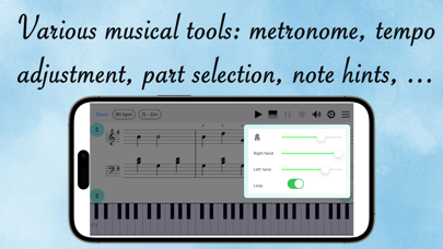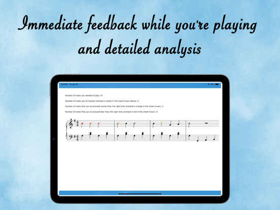 您是钢琴爱好者并想自学弹奏吗?你有没有试过用自学的方法自学钢琴(从书本、网站或YouTube频道学习……),但没有成功,因为你发现很难理解乐理,而且你没有想知道您演奏音乐的方式是否正确,因为没有钢琴老师可以帮助您? “钢琴家教”应用程序引入了一种全新的钢琴学习方法,完全以技术为导向。由于该应用程序试图充分利用的技术,学习钢琴的常见问题已以直观和用户友好的方式得到解决。您无需阅读大量理论即可开始演奏。只需阅读几行摘要并立即与练习互动,然后您将轻松获得您想知道的内容。在技术的帮助下,不需要太多的解释来展示一个音乐概念。 由于能够在移动设备和钢琴之间进行连接和交互(通过 MIDI 电缆或蓝牙),该应用程序专为与数码钢琴一起使用而设计。您仍然可以将应用程序与原声钢琴一起使用,但某些功能将不受支持。 与其他传统的自学方法(书籍、网站、YouTube 频道……)相比,该应用程序为您提供了其他方法所没有的两个重要功能,即交互和音乐工具。 * 相互作用: - 一旦连接到数码钢琴,该应用程序可以响应您在钢琴上弹奏的内容:它会检查您弹奏的音符是否正确,包括音高和时间,然后显示下一个要弹奏的音符。通过这种方式,您可以学习一个音符一个音符地弹奏,一次一只手,然后将两只手结合起来以合适的速度演奏整首歌曲。 * 音乐工具: - 回放工具:您可以在练习前听练习,分析结构、节奏、音符位置,... - 节奏调整工具:您可以将锻炼的节奏(速度)调整到您感觉舒适的值。这有助于您开始以较慢的速度练习,然后逐渐提高演奏速度。 - 节拍器工具:此工具可帮助您理解和发展节拍感,即音乐的节奏方面。此外,它还可以帮助您在正确的时间上演奏,这是音乐中一项极其重要的技能。 - 移调工具:您可以将一个练习移调到您喜欢的任何键(音调),这样您就可以在不同的手指位置练习某种技巧。 - 部分选择工具:在练习中,可以有容易的部分和困难的部分。您只需选择您认为需要开始练习的部分即可。 - 音符提示工具:如果您难以识别音符的位置,或和弦的音符位置,您可以选择在练习时显示提示,然后应用程序会显示音符在键盘上的位置. 为了帮助您快速取得进步,钢琴家教设计了四步钢琴课程: 1. 学习乐理。 2. 听练习,观察键盘,看看音符在钢琴上的位置。 3. 逐个音符学习弹奏练习,一次一只手,直到可以弹奏整个练习。 4. 练习以合适的速度进行练习。 * 对于那些已经知道如何弹钢琴的人,该应用程序仍然很有帮助,因为它可以帮助您提高阅读和演奏音符(视奏)的技巧。只需经常练习使用该应用程序,您就可以在短时间内更快地阅读音符。 * 更多练习会经常添加。随时提供您的反馈。 终止用户许可协议: https://www.termsfeed.com/live/bc38f42b-4637-462c-a215-f046cb5b45d8 隐私政策: https://www.termsfeed.com/live/7cc2ec5b-798c-4f0b-acce-748a4d734386- Bug fixes.