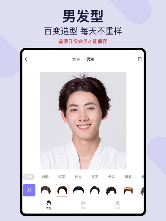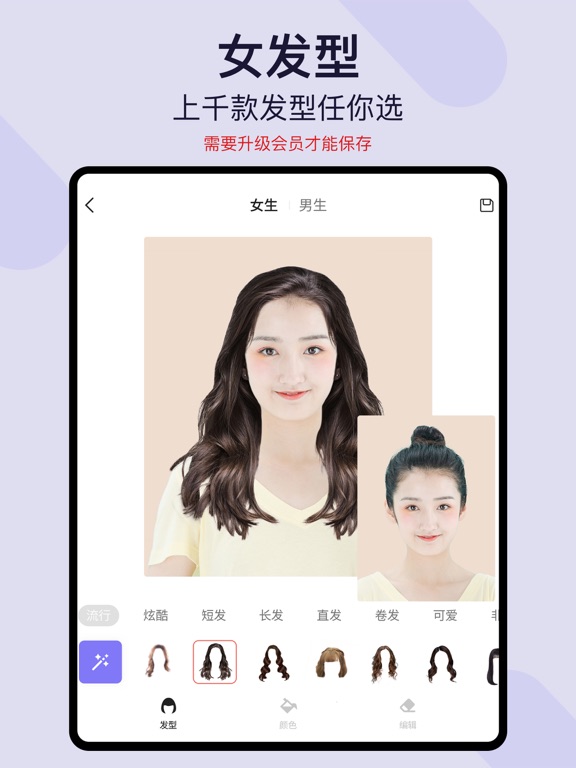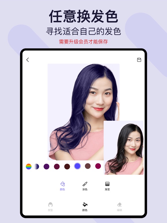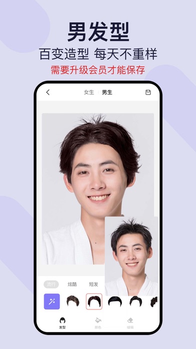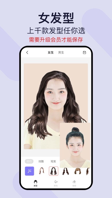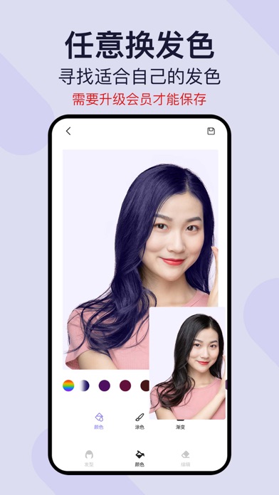 *请注意,如需将发型和颜色应用到您的照片上并保存,需要购买会员才能实现 发型发色是您专属的发型设计神器,无须去美发店即可享受总监级别的发型设计。只需几步简单的操作,即可让您的发型闪亮炫酷,烫发,染发,各种效果都有哦。 美发操作步骤: 1、准确的脸型测试,根据测脸型设计适合的脸型发型。 2、专门为型男靓女设计的海量发型:日韩范儿、新娘发型、古装发型等 3、强大的发型变色功能,可使用调色板把所选发型变成任意颜色。 4、不满意系统为您定制的发型,您还可以从1000多种发型中选择自己更加喜爱的哦(给自己选一个漂亮的,给讨厌的人选最丑的吧)。 Premium Features subscription - You can subscribe for new dairy updates and premium features. - Payment will be charged to iTunes Account at confirmation of purchase - You will be able to use all available premium features for the duration of the subscription - Subscription automatically renews for the same price and duration period as the original "one month"/"one year" package unless auto-renew is turned off at least 24-hours before the end of the current period - Account will be charged for renewal within 24-hours prior to the end of the current period at the cost of the chosen package (weekly, monthly or yearly package) - Subscriptions may be managed by the user and auto-renewal may be turned off by going to the user's iTunes Account Settings after purchase - No cancellation of the current subscription is allowed during active subscription period - You may cancel a subscription during its free trial period via the subscription setting through your iTunes account. This must be done 24 hours before the end of the subscription period to avoid being charged. Please visit http://support.apple.com/kb/ht4098 for more information - You may turn off the auto-renewal of your subscription via your iTunes Account Settings. However, you are not able to cancel the current subscription during its active period - Any unused portion of a free trial period will be forfeited when the user purchases a subscription to that publication. Links to our Terms of Service and Privacy Policy can be found below Privacy Policy:https://www.freeprivacypolicy.com/live/e900a1fb-98f0-42c8-a391-5de88abdb3fe Terms of Use: https://www.freeprivacypolicy.com/live/954a9886-0d26-4ba2-8631-fc6a00319809修复了换发色功能的问题