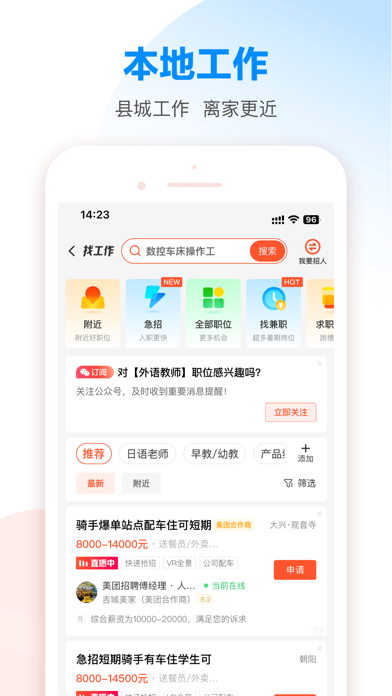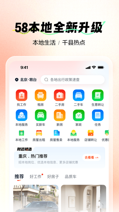58本地为你提供更全的本地生活服务信息,让生活更便利 【招聘、找房、买车】 找本地好工作、离家近, 找本地性价比高的房子, 买辆品质好车开回家; 【本地资讯、本地热点】 本地资讯,能随时了解当地新事件, 本地热点,今天有啥大事,在这都知道, 本地爆料,重要事情这里发布,告诉身边人, 各种本地资讯、便民服务、停水停电、新政策、交通信息、三农信息、名人轶事都在58本地 【寻人寻物、打听】 有人失踪、或者丢了什么物品, 打听你想知道的任何事 发布寻找打听信息,本地网友帮你一起找! 还有本地商户推广、二手物品交易、农机农具转让、生意转让等各种本地生活服务。 【连续包周求职金卡会员】 1.订阅周期:7天 2.订阅价格:12元 3.付款:用户确认购买并付款后计入iTunes账户 4.取消续订:如需取消续订,请在当前订阅到期24小时以前,手动在iTunes/Apple ID设置管理中关闭自动续期订阅功能 5.续订:苹果iTunes账户会在到期前24小时内扣款,扣款成功后订阅周期顺延一周 6.隐私政策:https://helps.58.com/rules/detail?siteId=5502&terminal=APP&contentId=302337&sourceType=58app-grzx&spReturn=1 7.会员服务协议:https://helps.58.com/rules/detail?siteId=5502&terminal=APP&contentId=316237&sourceType=58app-wd-gd&spReturn=1 8.自动续费协议:https://helps.58.com/rules/detail?siteId=5502&terminal=APP&contentId=316238&sourceType=58app-wd-gd&spReturn=1 【连续包月求职金卡会员】 1.订阅周期:30天 2.订阅价格:18元 3.付款:用户确认购买并付款后计入iTunes账户 4.取消续订:如需取消续订,请在当前订阅到期24小时以前,手动在iTunes/Apple ID设置管理中关闭自动续期订阅功能 5.续订:苹果iTunes账户会在到期前24小时内扣款,扣款成功后订阅周期顺延一个月 6.隐私政策:https://helps.58.com/rules/detail?siteId=5502&terminal=APP&contentId=302337&sourceType=58app-grzx&spReturn=1 7.会员服务协议:https://helps.58.com/rules/detail?siteId=5502&terminal=APP&contentId=316237&sourceType=58app-wd-gd&spReturn=1 8.自动续费协议:https://helps.58.com/rules/detail?siteId=5502&terminal=APP&contentId=316238&sourceType=58app-wd-gd&spReturn=1修复已知问题