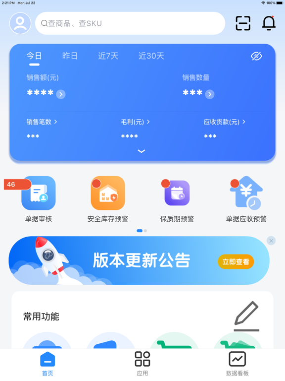 网上管家婆移动版,专为中小微企业打造的一款移动进销存ERP管理软件,为批发、零售、电商等各种行业形态客户提供基础进销存及供应链管理功能。 网上管家婆移动版针对服装鞋帽、手机数码、食品饮料酒水等行业客户,致力于为客户提供核心业务场景的支持。支持电脑、手机、平板、PDA多终端数据实时同步,帮助企业提升效率,降低成本。 【核心功能】 商品管理:商品多规格管理、SKU管理、条码管理、商品属性/批次/序列号管理 采购管理:采购订单、采购入库、采购退货、采购换货、采购汇总等 销售管理:销售订单、销售出库、退货、换货、销售汇总等 库存管理:商品调拨、库存盘点、库存查询 财务管理:往来应收应付、收款、付款、费用、其他收入 【功能亮点】 1.跨平台操作,数据实时同步:手机、电脑数据实时云端同步,数据管理灵活又安全 2.支持多种行业特性:支持服装、手机数码、食品、五金建材、快销品等行业进行业务管理 3.效率高:扫码快速完成进货、销售、盘点以及库存查询 4.报表丰富:销售数据支持按品牌、客户等多维度进行数据分析、往来对账清晰准确、利润查看一目了然 【温馨提示】 操作员在进行巡店业务过程中,应用会使用GPS定位服务记录巡店轨迹用予分析巡店里程、线路导航及效率分析,切换至后台仍会继续使用GPS定位服务,直至巡店业务签退成功。相比其他操作会消耗更多的电量,影响电池续航时间。 【关注我们】 感谢您使用网上管家婆移动版,我们每一次进步,都离不开您的关注和支持,使用中有任何问题和建议均可留言给我们,使用过程中遇到任何问题,请随时联系我们。 客服热线:028-85310000 微信公众号:wsgjperp | 网上管家婆ERP 联系地址:四川省成都市高新区世纪城南路599号天府软件园D区2栋B座1、提升系统稳定性