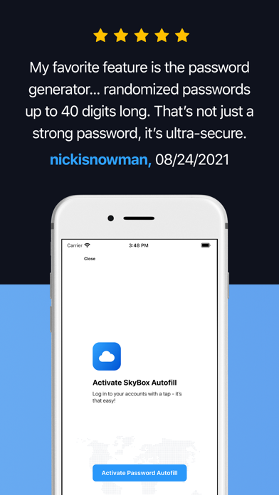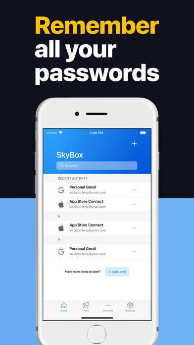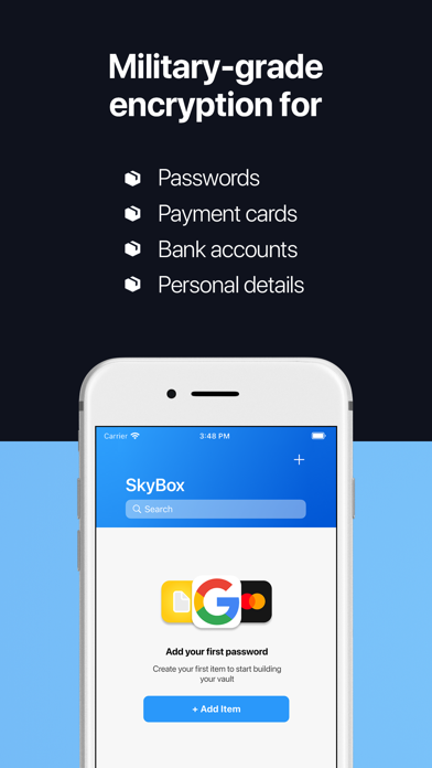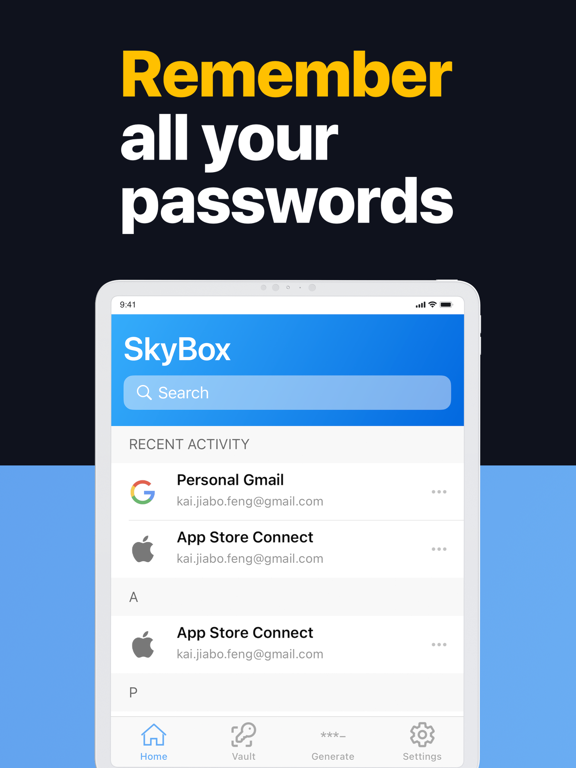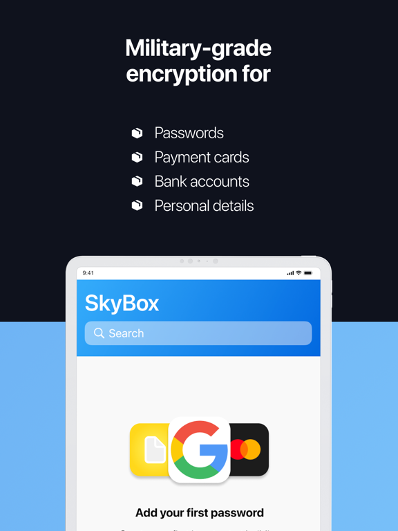 停止锁定您自己的帐户 - 将您的所有密码和凭据安全地存储在 SkyBox 中。 SkyBox 是您的个人安全云,使用军用级加密自动备份所有密码、支付卡、银行账户和个人详细信息,让您无需担心。 它很安全,就像真的很安全。您存储在我们这里的每一位敏感信息都使用世界上最复杂的加密算法在本地加密两次,然后才保存并备份到云端,这意味着没有人(甚至开发人员)可以查看您存储的数据 - 您的数据真正只为你的眼睛。 很方便。使用 SkyBox 自动填充功能,您可以一键自动填充任何应用程序或网站中的帐户名和密码字段。无需耗时的手动输入,只需点击即可。 需要生成新密码? SkyBox 为您提供保障。使用我们最先进的强密码生成器,您将能够使用您选择的自定义配置生成安全密码,并一键保存新密码,这样您就无需记住它 - SkyBox 为您完成。 SkyBox 是世界上最好的密码管理器,但它不仅仅是一个密码管理器。 SkyBox 是您的个人安全云,它承载您所有最重要的信息,无论您走到哪里都可以使用。它是您的密码管理器、您的持卡人、您的手机钱包、您的数字笔记本、您的加密货币地址保险库……它是世界排名第一的秘密管理器,可免费下载。 经常问的问题 ----------------------------- 问:SkyBox 是如何赚钱的? 答:SkyBox 可以免费下载和使用。我们不会出售您的数据——事实上,您存储的所有数据都使用极其复杂的算法进行了加密,因此实际上没有人能够看到它(除了您自己)。我们通过高级订阅赚钱,订阅者可以无限制地访问所有功能,包括(但不限于): - 存储无限记录 - 在任何设备上访问云备份和同步 - 24/7 优先技术支持 问:是什么让 SkyBox 如此安全? 答:SkyBox 使用 AES-256 加密,在您的数据被存储之前,它以指数方式提高加密信息的安全级别。这意味着我们对您的数据的了解为零 - 所有任何人都可以看到他们是否打开数据库都是乱码,看起来像这样:“UKGB3SFIT1f77dljwuAJ...” 问:你们的退款政策是什么? 答:请注意,我们不提供退款。如果您在下一个续订周期之前取消您的计划,您将保留对付费功能的访问权,直到您的订阅期结束。当您的订阅到期时,您将无法访问付费功能以及与这些功能相关的所有数据。 官网:https://tryskybox.com/home 服务条款:https://tryskybox.com/terms-of-services 隐私政策:https://tryskybox.com/privacy-policy 联系我们:https://tryskybox.com/contact错误修复和性能改进。