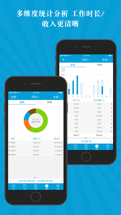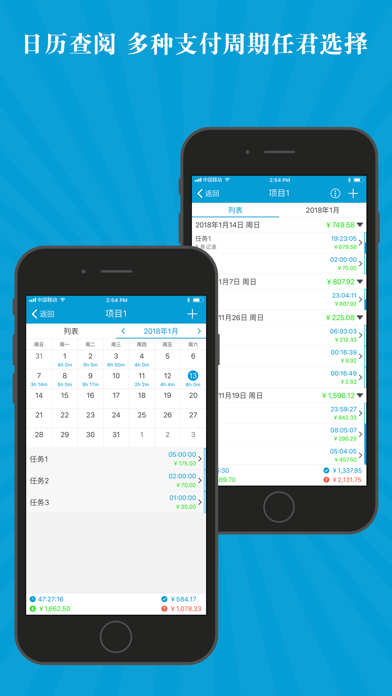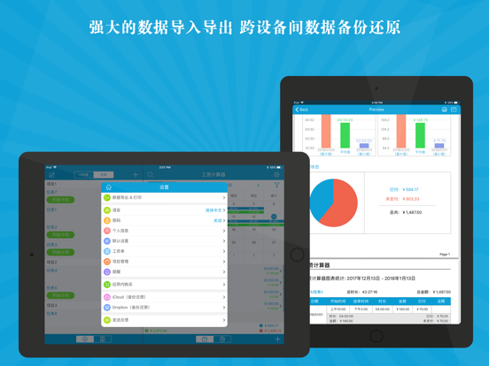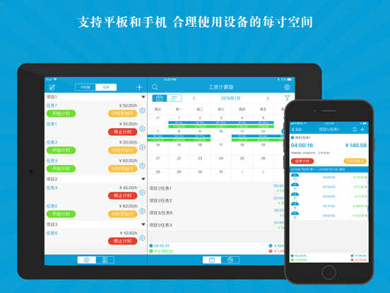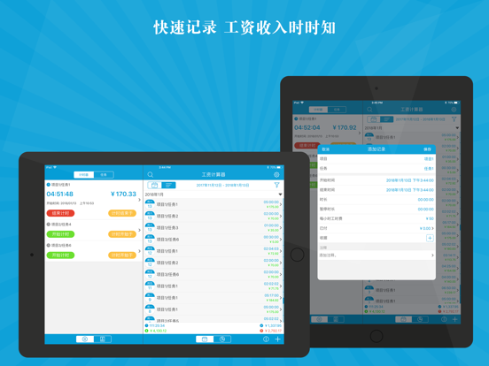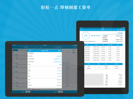 本应用是一款易于使用的工资计算器工具,通过轻点即可开启和结束计时,支持自动化计算您实时掌握工作时长和工资收入,以日历和列表双模式的呈现让您更清晰的核算每天,每月的工资。 支持将工作记录一键生成工资单发送给客户;应用内提供数据导出和打印功能,同时可手动标记每条工作记录的薪水支付情况。 主要功能: ⁃ 可设置任务的每小时工时费,是否需要交税,加班费的计算方法,同时可设置自动休息和午休时间等详细信息。 ⁃ 为任务设置分组。 ⁃ 轻轻一点,即可开启或者结束计时。 ⁃ 支持多个计时器同时运行。 ⁃ 可创建每个任务自动启动或者结束计时的时间。 ⁃ 计时过程中动态显示已工作时长和对应的工时费。 ⁃ 可记录工作时长和工时费等信息。 ⁃ 手动标记工资的支付进度。 ⁃ 支持以列表和日历两种方式查看工作记录。 ⁃ 可通过计时器和手动创建两种方式添加工作记录。 ⁃ 一键即可将工作记录生成工资单。 ⁃ 应用内部导出或者直接打印工资单。 ⁃ 按照应付款日期,支付状态和客户信息等排序方式查看工资单。 ⁃ 支持在工资单中添加付款记录。 ⁃ 多图表统计,清晰掌握每个阶段工时费和工作时长。 ⁃ 支持通过iCloud和Dropbox进行备份还原操作。 ⁃ 密码功能保护您的数据。 ⁃ 创建提醒。 ⁃ 支持应用内导出数据和数据打印功能。 ⁃ 支持通用版本。 如有任何疑问或者建议,请邮件发送至yqapps@tom.com。⁃ 兼容了iOS 18。 ⁃ 修正了一些小问题。