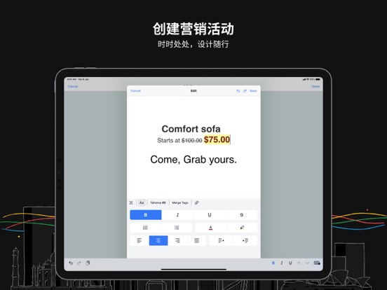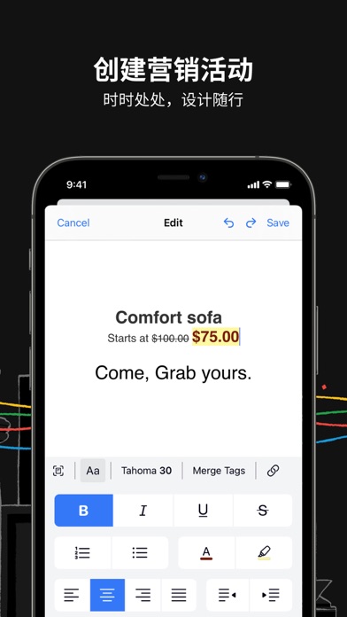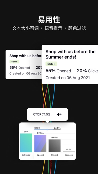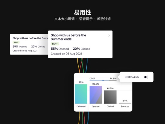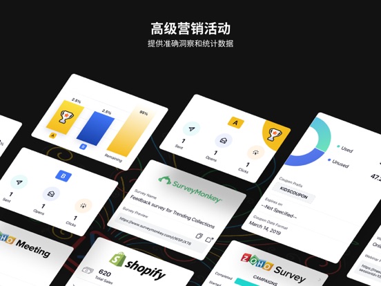 Zoho Campaigns是一款电子邮件营销软件,用于接触、培育和壮大您的受众。创建精美的营销邮件,定制信息,群发邮件,并与新客户联系。 Zoho Campaigns提供一系列工具包来满足您的邮件营销需求,是您进行邮件营销的首选工具。 创建富有吸引力的营销活动 • 您可以从众多预定义模板中选择,轻松创建精致的营销邮件。创建之后可以选择立即发送或根据您的需要安排计划发送时间。 多种发送选项,制定发送计划等 • 您可以选择立即发送营销邮件或按照您的时区以及客户的最佳打开时间来安排计划发送时间。 • 可以随时暂停、恢复、取消以及重新计划您的营销活动。 追踪您的营销活动的效果 • 通过多种图表,从不同视角展示您的营销活动的统计信息。 批量导入联系人 • 可以轻松地将您的联系人导入到本应用中。 访问门户 • 从一个地方访问您机构的所有门户。 ------ 全新的用户界面 • 新设计的令人耳目一新的用户界面,可增强您的电子邮件营销体验 通过直观的iOS14菜单项、日期和颜色选择器,让您使用起来得心应手。 小部件 • 通过新的小部件,直接在主屏幕上随时了解您的营销活动的绩效。 SIRI 快捷方式 • 通过Siri的协助,无需手动操作,即可获得您想要的信息,如:营销活动的概览报表、联系人的增长图表等等。 • 定制快捷方式,使用Siri与其他应用共享您的营销活动的表现 丰富的通知, SPOTLIGHT搜索, 主屏快速操作, 上下文菜单等 ------ 每个人都可以使用 语音提示 • 让屏幕阅读器帮助您浏览应用程序,了解和管理屏幕上发生的事情。从创建邮件列表到发送营销活动的邮件以及检查营销活动的结果,都可以得到屏幕内容的声音描述。 动态字体大小 • 可为本应用设置专门的字体大小,也可以设置为符合您设备的字体大小,从而为您带来舒适的体验。 颜色过滤 • 图表中的颜色对于色盲和有其他视力障碍的人都可区分。 黑暗模式 • 可根据需要将本应用切换到黑暗模式,免受在暗环境下观看亮光屏幕的困扰。 定制触觉来感受动作 • 当在应用中执行操作时,会得到一个提示,从而为您自己定制强度。 ------ 全新的IPad应用 • 使用更大的屏幕,专门为iPad制作更多可视化的内容,使工作比以往更有效率。 多窗口 • 可同时打开多个Campaigns窗口,并排比较营销活动的绩效,让您能更快地完成任务。 多任务 • 用拆分视图或用滑动视图进行多任务处理,显著提高工作效率。 支持拖放 • 可将本应用的图表,拖放到到任何应用中。只需将列表拖放到某个营销活动中,即可将其与营销活动相关联。 用Apple铅笔做更多事情 • 可利用Apple铅笔,为您的模板创建精美的图片,从而在您的营销活动中展现您的创造力。 • 在添加新的联系人时,可用Apple铅笔手写电子邮件地址,将其转换为联系人。 • 在任何字段上写字,将它们转换为应用程序内的文本。 键盘快捷方式 • 可使用键盘快捷键,滚动并制作电子邮件内容。 ------ 隐私政策:https://www.zoho.com/privacy.html 服务条款:https://www.zoho.com/campaigns/terms.html 应用内购买 您可以升级到基于订阅者的订购计划,并在每月或每年自动续订。 - 付款将在确认购买时从iTunes账户中扣除。 - 除非在当前期限结束前至少24小时关闭自动续订功能,否则将自动续订。 - 账户将在当前期限结束前24小时内被收取续费,并确定续费的费用。 - 用户可对订购进行管理,并可在购买后进入用户的账户设置,关闭自动续订功能。 - 如果提供免费试用,任何未使用的部分将在用户购买时被没收。我们会定期更新Zoho Campaigns的应用程序,以使其更快、更稳定,方便大家的使用。 如果您愿意,请在 App Store 上对本应用进行评价和评论。您也可以随时发送电子邮件至campaign@zohomobile.com 来反馈您的意见和建议