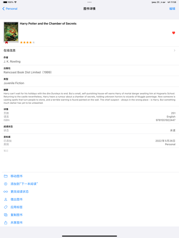 BookBuddy 是一款强大的图书管理应用程序,可让您访问整个图书目录的任意位置。使用 BookBuddy 既有趣又简单,通过它可快速查找书库中的任意图书、共享喜爱的图书,还可跟踪借入和借出的图书。 主要功能 • 添加您的图书 通过以下方式添加您的图书: - 扫描条形码- 输入ISBN - 通过关键词在线搜索 - 手动添加 - 从CSV文件导入 • 管理您的图书 让您的图书各归其位: - 我的图书 — 您拥有的图书 - 欲购清单— 您想要拥有的图书 - 已借入 — 您向别人借阅的图书 - 之前拥有 — 您不再拥有的图书 • 同步您的资料库 使用iCloud或Dropbox sync在多个设备间同步您的资料库。 • 分享您的资料库 通过BookBuddy Companion网站在线分享您的资料库,还能邀请其他人来查看(需要月度订阅)。 • 解锁您的阅读洞察 通过探索以下统计数据深入了解您的阅读习惯: - 完成的书籍 — 追踪您已完成的书籍数量 - 阅读的页面 — 查看一段时间内的页面数 - 最常读的作者 — 发现您最常读的作者 - 最喜爱的类型 — 确定您偏爱的类型 更多特色 • 通用应用 — 一次付费,就能在您的iPhone,iPad,Apple Silicon Mac上使用BookBuddy。 • 个性化 — 使用类别和标签,标记收藏,添加个性化笔记,等等。 • 外观 — 选择列表或网格视图以匹配您的需求。 • 借出 — 立即追踪当前被借出的图书。 • 多选 — 使用多选功能应用批处理。 • 阅读状态 — 通过图书的阅读状态筛选您的图书。 • 快速查找 — 输入搜索关键词或扫描图书的条形码快速查找图书。 • 导出 — 快速把您的资料库导出成CSV,PDF或HTML格式。 • 打印 — 轻松将已选的图书通过支持隔空打印功能的打印机打印出来。 • 备份 — 为任意云端服务创建备份。 • 活动历史 — 查看您的阅读和借出活动的完整历史记录。 • 重复 — 快速检测重复内容并轻松移除。 • 隐私 — 您的资料库将本地化秘密地保存在您的设备中。 • 还有更多! 教室资料库管理(教师专用) • 管理 — 使用BookBuddy可以管理您的教室资料库,并追踪学生的结算。 • 结算历史 — 轻松追踪结算历史记录并查看数据。 • 联系人 — 将您的学生姓名保存到BookBuddy联系人中,而不是保存到您的个人联系人应用中。 • 阅读水平字段 — 使用各种不同的字段可以追踪您图书的阅读水平。 • 在线分享 — 允许学生通过BookBuddy Companion网站进行图书的自助结算(需要月度订阅)。 意见与建议 我们愿与用户互动并期待您的意见与建议!如果您有任何反馈、问题或疑虑,请发送电子邮件到以下地址: support@kimicoapps.com 或访问:http://www.kimicoapps.com/support.html 在 Facebook 关注我们: http://www.facebook.com/KimicoLtd * Privacy policy: https://www.iubenda.com/privacy-policy/12652322 * Terms and Conditions: https://www.iubenda.com/terms-and-conditions/12652322Ready for iOS 26 • Full support for iOS 26 and iPadOS 26 • A refreshed, modern look throughout • iPad: adjust the Split View divider on iPadOS 26 only • Favorites & Ratings: refined visuals with haptic feedback • Accessibility: clearer VoiceOver and enhanced “Differentiate Without Color” support • Standardized bar button titles and placement to match Apple guidelines • System-style tips for contextual guidance If you enjoy this update, please rate BookBuddy on the App Store!