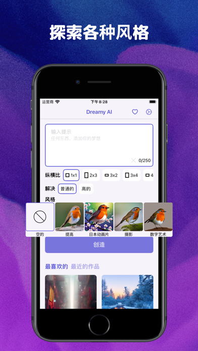 利用人工智能的力量,将文字变成照片、图像、图画和绘画。你只需输入一个提示,选择一种艺术风格,然后就能创作出令人惊叹的艺术作品!只需几秒钟,就能将你的想法变成真实的艺术作品。这就是你的艺术站。 使用 Dreamy AI 非常简单:只需描述你想画的内容,选择一种风格,然后点击创建即可! 以下是你可以生成的一些很酷的艺术作品、 - 抒情部分 - 诗歌 - 明星标志 - 电影人物 - 名人 - 纪念碑 以及更多... 分享您的作品,成为病毒式传播者! 您还可以在以下位置使用您的作品 - 手机锁屏 - 社交媒体封面 - 社交媒体个人照片或头像 - 设计您的书籍封面或下一首歌的封面:) 以及更多... 如果您有任何问题,请随时与我们联系,support@kemalbakacak.com。 订阅和定价: 如果您选择购买,付款将从您的 iTunes 账户中扣除,并在当前期限结束前 24 小时内从您的账户中扣除续订费用。您可在购买后进入 iTunes 商店的设置随时关闭自动续订功能。免费试用期内未使用的部分(如有提供)将在用户购买订阅该出版物时(如适用)被取消。 当前订阅起价为 2.99 美元/月。 可通过以下链接停用订阅: https://support.apple.com/en-us/HT202039 隐私政策: https://kemalbakacak.com/agreements/dreamy-ai-art-generator/privacy_policy.html 使用条款: https://kemalbakacak.com/agreements/dreamy-ai-art-generator/terms_and_conditions.html Background image on screenshots and logo has been designed by rawpixel.com on Freepik.com.Thank you for using Dreamy: AI Art Generator. In this version, - Made some minor design improvements. Thank you for your continued support!