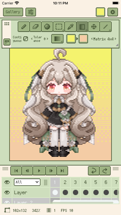 功能强大的像素艺术编辑器。致力于成为在移动端进行游戏领域像素精灵图片创作的利器,可以满足专业创作人员的需求。堪比桌面应用的强大完整的功能集,和适应移动环境与笔的优化与创新,让你随心所欲的创造。 Resprite 提供了完整的像素画编辑工具、一套创新的着色工具、一套高级图层和时间轴系统和基于Metal的高性能渲染引擎,可以助您创作出迷人的像素艺术、精美的Spritesheet、美丽的GIF动态表情和游戏美术资源。 无论躺在沙发上,还是在露营的帐篷中,在海滩休闲时,在机场等候时,都可以轻松创作。Resprite 就是您手中的移动像素画工作室。 Resprite 包括: -高性能的绘图引擎 -创新的高效的调色板与着色工具 -完善的dithering pattern支持 -灵活的界面布局,一触即达 -优化的手势和笔控制,得心应手 灵活的界面布局: -随心所欲的摆放悬浮窗口 -窗口均可最小化 -缩短笔与目的地的距离=效率的提升 -完美的像素风格软件界面 全能的工具组合: -支持画笔、创新的着色工具、3种不同的选区工具、取色、颜料桶,3种不同形状工具,及丰富的子选项 -支持Pixel perfect、Alpha lock、Dithering等要素 -让工具栏在你想要的任何位置,立即触达 -支持拷贝、粘贴(跨文件),水平和垂直翻转,旋转,缩放 -支持画布、图像的缩放和变换 -支持快速描边 便捷的参考图机制: -支持载入多个参考图 -可以缩放、最小化 -可以摆放在任何位置 创新的调色板: -自由位置排布 -与着色工具的联合机制 -插值创建中间颜色 -调色板的导入和导出 -从画板中采集自动采集调色板 导入与分享: -支持导入和导出GIF文件,spritesheet文件,和Resprite包 -导出时,可设置放大倍率、帧边距、spritesheet的排列方式等 -可以按动画片段单独或分行导出 -支持导入和导出调色板文件,支持GPL和RPL格式 功能完善的图层和时间轴: -通过完善的特性,通过图层灵活创作 -支持复制、合并、平面化、静态化等高级操作 -支持Onion Skin -支持设置多个动画片段,并可选中 -可靠的效能,数百帧动画,依旧流畅 -支持颜色标签,支持多级分组,对图层设置透明度 快捷的手势操作: -支持笔的低倾斜角度、重压手势 -通用的双指点击、三指点击的撤销与重做 -支持自定义笔的Double-Tap功能 -单指手势控制,快捷切换帧和播放,开关洋葱皮 -长按手势 -灵活调节手势对应的操作 演示图像的像素艺术作品来自这些艺术家: 史大巴、斯尔娜娜、扑倒奥利奥、吱小墨、妘归、KATLEE十三、石睐暮 PREMIUM高级版: 您的 Resprite PREMIUM高级版可解锁以下功能: - 解除导出限制 - 颜色调整 - 描边功能 - 对称工具 应用程序的所有功能均可供您使用。 Premium 在 iPad 和 iPhone 之间共享。 客户支持: 文档: https://resprite-cn.fengeon.com/ Email: support@fengeon.com 可选的应用内购买: 费用将从您的 iTunes 帐户中扣除。除非在当前期限结束前至少 24 小时关闭自动续订,否则订阅将自动续订。购买后,您可以随时在 Apple ID 帐户设置中管理自动续订。 条款和条件: 您对此应用程序的使用受条款 https://resprite.fengeon.com/terms 和隐私政策 https://resprite.fengeon.com/privacy 及其任何后续版本的约束。- 新增:能够锁定布局 - 优化:新增对trackpad以及tourbox的画布缩放和旋转的支持 - 优化:适配iOS 26 - 优化:优化字间距、行间距等图标,加小黑盒链接 - 优化:合并图层组时保留图层名称 - 优化:修改图层名称、修改文件名等可按回车确认 - 优化:多行输入框增加切换键盘的小按钮 - 优化:改进快捷键缩放画布时的锚点位置 - 优化:新增一些键盘快捷键 - 修复:解决特定条件下新建画布时崩溃的问题 - 修复:整数输入框数字1的问题 - 修复:解决极个例多行文本输入框无法弹出键盘的问题 - 修复:尝试解决偶尔出现字符图片乱飞的显示问题
