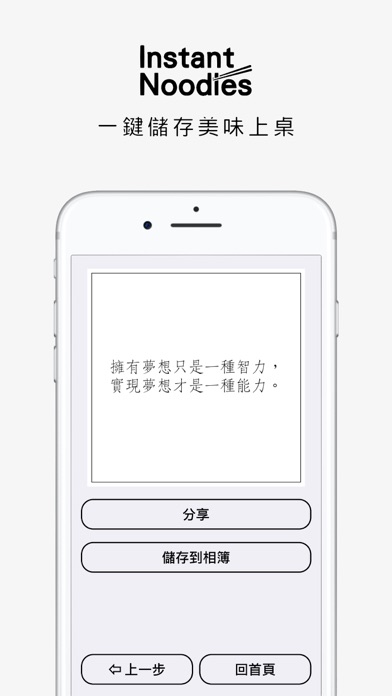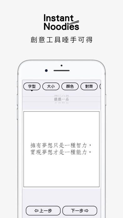 《方便面》使用者平均一分钟就能够制作出一张语录图片,速度比实际泡一碗方便面还要快! 有时候,灵感在一瞬之间就溜走了,但是有了《方便面》,你能够即时记录灵感并制成图片,轻松分享到自己的朋友圈! 【方便面是什么?】 《方便面》是一款专业级的文字编辑神器,不只内附多款颜色与字型,还提供个人水印、企业 Logo 的上传。使用《方便面》,你可以在社群软件上发挥创意展现个人特色,成为众人的目光焦点! 【方便面可以做什么?】 • 语录图 • 表情包 • 单字卡 • 便利贴 • 邀请函 • 心情纪录 • 社群贴文等 【感谢网友一致盛赞】 • 这是我一直在期待的app!好用(By 匿名鳄鱼) • 非常简洁有力的APP ......太可爱了!(By 爆肝的菜鸟工程师) • 更多好评持续搜集中,欢迎你一起留下评论,让我们为你做得更好 【升级】专业版 您可以透过订阅《方便面》,解锁更多专业版功能,《方便面》依苹果的自动订阅规则进行按月/按年自动续订与扣款。 一共两种订阅方案: • 按月订阅(订阅期间:1 个月) • 按年订阅(订阅期间:1 年) 升级后您将享有诸多专业版功能,如下: • 5 种全新字体 • 自订文字、背景、边框颜色 • 从相簿挑选照片当作背景 • 搜寻免费图库上海量图片素材 • 套用多款滤镜与雾化特效到照片上 • 为图片添加手写签名 • 编辑与收藏幸运签诗 • 全App内无广告,版面干净不扰人 当您确认购买时,系统会从您的 Apple ID 帐户扣款。除非您在当前订阅期结束前 24 小时取消订阅,否则订阅会自动续订。系统会在当前订阅期结束前 24 小时内,从您的帐户扣除续订费用。完成购买后,您可以前往 App Store 的帐户设置管理和取消您的订阅。如果有提供免费试用期,任何未用尽的免费试用时间将在您购买订阅时被收回。 隐私政策: https://privacypolicies.com/privacy/view/8b27607682e9589727223737b0380ebb 使用条款: https://www.termsofusegenerator.net/live.php?token=IA09y1CooVibWZKg9sudZSPTi8TpVYpe 联络资讯: yichingbusiness@gmail.com• 修复已知错误 • 优化使用体验