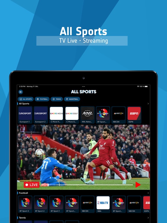 在多个设备上观看体育直播或点播,这样您就可以在家或在旅途中收听。 所有体育电视直播应用程序包括直播、体育集锦、每日体育新闻、比赛预览和预测。 您可以在移动设备上观看所有国家联赛、欧洲、英国、美国体育、欧罗巴联赛、冠军联赛、亚洲体育等的所有体育直播比赛。 以您喜欢的方式观看体育赛事 • 以您的设备可以处理的最佳质量流式传输所有内容,最高可达高清 • 运动包括足球、赛车运动、格斗运动、美式足球、棒球、网球、篮球、nfl、橄榄球、飞镖等等 • 在您的手机和平板电脑上在线运动。 任何时候。 任何地方。 隐私政策同意书 通过安装此应用程序,您同意隐私政策Bug fixes and improved live tv coverage from worldwide sport leagues, highlights and fixtures