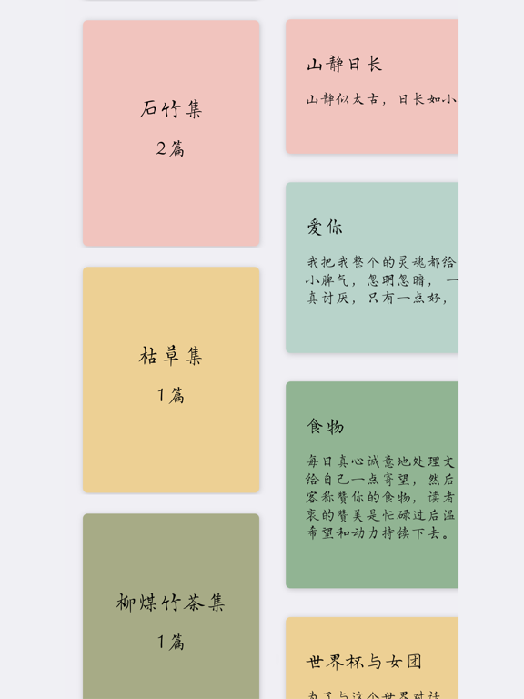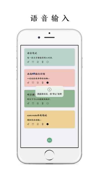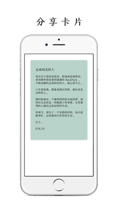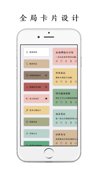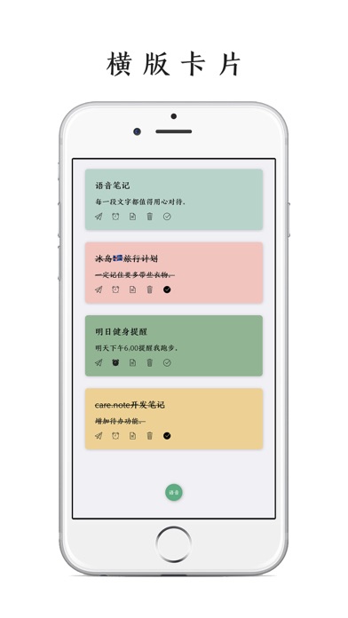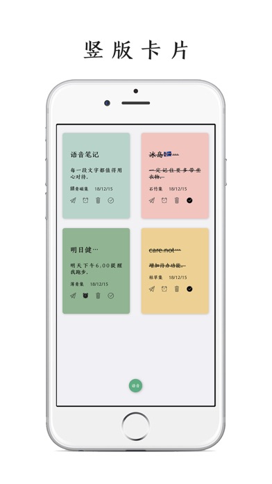「Card.Note」:每个念头都值得用心记录 这是一款以卡片为主要设计理念的极简记事 App 。 你写的每一段文字都可以生成一张张精美的卡片 。 你可以用它来写诗、短文、随想; 也可以用它来写日记、清单、规划、要事提醒; 还可以直接用语音输入来记录每个瞬间的念头。 「Card.Note」九大特点: 1.极简设计 循着极简的设计理念,结合图标及手势操作,轻松上手。 2.全局卡片化 充分融入了卡片设计理念,可根据喜好随意切换横版或竖版两种卡片笔记显示样式。 3.全局手势化 下拉可新建笔记,再下拉可保存笔记,右滑可呼出作品集,长按卡片可预览卡片内容。 4.语音录入 打开便可直接语音输入,随时记录每个灵光显现的想法。你可以把它当作成iOS文艺版“闪念胶囊”。 5.要事提醒: 可设置提醒闹种,重要事情和计划不再错失。 6.快捷高效 支持3D-Touch及Widget小组件功能,可直接在应用图标或Widget快速打开应用或直接进入创建笔记界面,让你随时高效地记录每个念头。 7.文青定制 精选了 10 款记事字体及 9 种文青主题色卡、多达 100 种不同颜色的色卡,可根据喜好定制各种卡片。 8.iCloud云同步 支持iCloud云同步,多台设备间数据可任意同步。 9.深色模式 全局适配深色模式,视觉舒适不刺眼。 感谢下载,生活愉快。 如有问题或建议,请联系开发者 微博:PoPoem开发者 邮箱:yande18@126.com修复创建笔记页面保存按钮溢出问题。