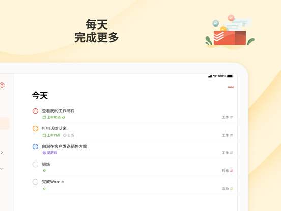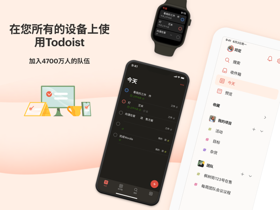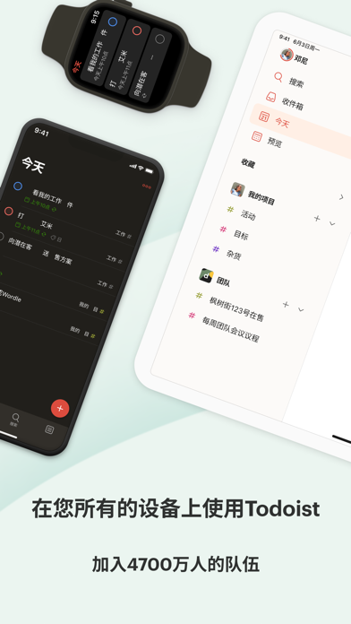 受到超过4700万个用户的信任,Todoist帮助个人和团队简化他们的任务管理。使用Todoist来快速整理您的思路,提升效率以及培养习惯。 只需轻轻一点,即可添加您的任务并且设置提醒,使用日历、列表和看板等多种视图,按照工作和/或个人生活来过滤任务,合作项目,最终获得心安。 为什么选择Todoist? Todoist是一个简单但是强大的任务管理工具,它将会帮助您管理您的工作和生活。 • 使用Todoist强大的日期识别和循环日期功能来添加任务“每周五下午计划下周工作”或者“每周三下午6点完成孩子的功课”,以便培养习惯。 • 使用列表、看板或者日历查看任何项目让您在计划您的任务以及时间安排时无比灵活。 • 在所有设备上可用,无论是应用、插件还是小组件,Todoist无处不在。 • 关联Todoist与您的日历、语音助手、Outlook、Gmail和Slack等超过100个其他工具。 • 分配任务给其他人来进行任何类型的项目合作。通过添加截止期限、评论和文件让相关内容近在手边。 • 通过一键模版帮助您跟进会议议程、会计工作、打包列表甚至是婚礼计划等任何事情。 • 设置直观的任务优先级来让最重要的事情一目了然。 • 深入分析您的个人效率趋势来让您更加了解自己的习惯。 Apple iOS版Todoist • Todoist的设计优美直观,易于入门。 • 在您的iPhone、iPad和Apple Watch上保持有序,同时它也可以在桌面版和其他设备上同步。 • 使用日常用语尝试输入“明天下午4点”或者“每隔一周的周三”等日期,Todoist会帮您识别这些信息。 • 升级后解锁定位提醒,再也不会忘记任何小事。 • iOS版更多强大功能:Siri、今天小组件、分享插件、接力和快捷指令。 疑问?反馈?请访问todoist.com/help 备受瞩目: > The Verge: “Simple, straightforward, and super powerful” > Wirecutter: “It’s simply a joy to use” > PC Mag: “The best to-do list app on the market” *关于专业版付费*: 您可以免费使用Todoist,但是如果您升级到专业版方案,您的Apple账户将会被收费。您的账户将会在当前周期结束前的24小时内自动续订并被收取对应的费用,您可以选择按月或者按年支付。购买后,您可以随时在您的Apple ID账户设置中关闭自动续订。只是一些底层维护。 轻触您设置中的“最新动态”来了解全部更新。