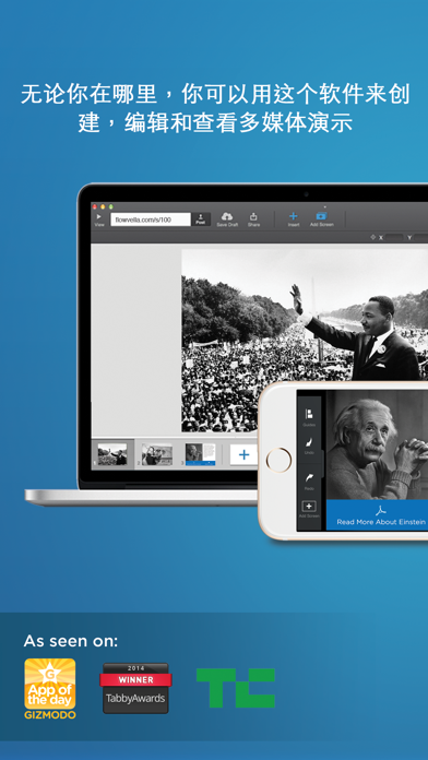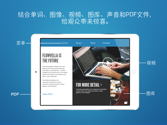FlowVella是一款用于讲故事及演示的应用,让任何人都可以制作侧边滚动的出版物,可包含图片、文字、视频、PDF、链接及照片库。无论你是想要讲故事、分享想法,还是做演示,可以直接在你的iPad上使用Flowboard制作和展示,并可分享到其他设备上。Flowboards有趣、时尚且兼具娱乐性。 使用FlowVella,只需一些简单的触摸和手势即可在你的iPad上创作完整的故事。可将照片、视频、PDF等拖入相关位置,输入文字及创建导航链接。Flowboard在应用内即可连接你的所有照片、视频、云内容,或Google图片搜索。利用我们的模板库,还可以即刻打造精美的演示文稿、相簿、目录、照片书等等。在分享你的Flowboard URL后,任何有iPad或能访问网络的设备都可以查看。 Visit http://flowvella.com! FlowVella is free to download and use and comes with the ability to post 4 public flows. For extended functionality and more features, FlowVella has two paid plans, Premium and PRO. Premium is available through an auto-renewing subscription for $4.99/month or $49.99/year and PRO is $19.99/month or $199.99/year. Premium allows for more privacy options, more screens and unlimited flows. PRO allows unlocks Kiosk Mode and other features for professional use. Subscriptions will be charged to your credit card through your iTunes account. Your subscription will automatically renew unless cancelled at least 24-hours before the end of the current period. You will not be able to cancel a subscription during the active period. Manage your subscriptions in Account Settings after purchase. FlowVella Terms:http://bit.ly/FlowVTOS Formerly known as Flowboard大家好,我们对产品进行了优化,让体验更上一层楼。本次更新内容如下: 提升整体性能和稳定性 根据平台新要求优化了页面布局 修复了 MyFlows 中的排序问题(感谢大家的反馈) 新增 自助终端模式 功能,原本仅限 Flow Kiosk 修复了进入 标注模式 时偶发的崩溃问题 界面整体样式更统一,增加了更多圆角 将“Twitter”更新为“X” 原版 App Store 图标应用户要求回归 感谢大家一直以来的支持。敬请期待更多精彩功能。