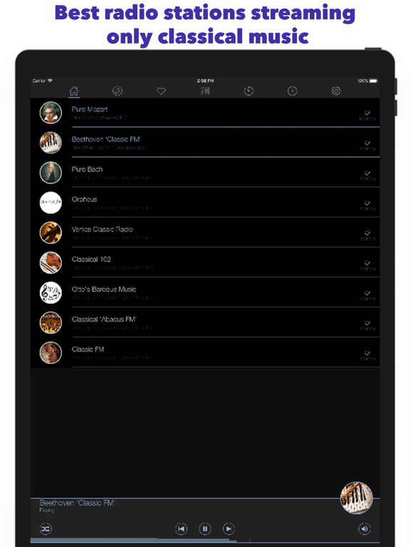 正在寻找一款包含古典音乐所有收音机的应用程序? 您找到了您正在寻找的Radio App,在线收听Classical的最佳和最高质量的电台。 特征: - 每次更新超过50个电台+新电台 - BASS音频库,具有出色的32位音质! - 强大的9频段均衡器 - 许多音频播放选项 - 睡眠关闭计时器 Radio Art - Antonio Vivaldi Radio Art - Aura Radio Art - Ballet Music Radio Art - Baroque Radio Art - Cello Works Radio Art - Chamber Works Radio Art - Choral Works Radio Art - Classical Radio Art - Classical Crossover Radio Art - Classical for Sleep Radio Art - Classical Relaxation Radio Art - Contemporary Radio Art - Eric Satie Radio Art - For Inspiration Radio Art - For Study Radio Art - For Work Radio Art - Franz Schubert Radio Art - Frederic Chopin Radio Art - George Handel Radio Art - Guitar Radio Art - Harpsichord Radio Art - Johann Seb. Bach Radio Art - Johannes Brahms Radio Art - Joseph Haydn Radio Art - Just Classical Radio Art - Love Songs Radio Art - Ludwig Beethoven Radio Art - Lute Radio Art - Music for Moms Radio Art - Opera Radio Art - Orchestral Radio Art - Organ Radio Art - Overtures Radio Art - Piano Radio Art - Piano Guitar Radio Art - Piano Trios Radio Art - Positivity Radio Art - Pyotr Tchaikovsky Radio Art - Robert Schumann Radio Art - Romantic Period Radio Art - Solo Flute Radio Art - Solo Harp Radio Art - Solo Instruments Radio Art - Solo Piano Radio Art - Stress Relief Radio Art - Violin Works Radio Art - Wind Works Radio Art - Wolfgang A. Mozart Radio Bach Radio Bayrak Klasik 88.4 FM Radio Beethoven Radio Bolivariana 92.4 Radio Bolivariana Virtual FM Radio Breslav - Kol HaNachal Radio Caprice - Classical Baroque Radio Caprice - Classical Choral/Vocal Music Radio Caprice - Classical Crossover Radio Caprice - Classical Piano Radio Caprice - Classical Piano/Harpsichord Radio Caprice - Contemporary Classical Radio Caprice - Flute Radio Caprice - Mass/Chorus/Cantata Radio Caprice - Modern Classical Radio Caprice - Neoclassical Radio Caprice - Neoclassical Music Radio Caprice - Opera Radio Caprice - Organ Radio Caprice - Piano Radio Caprice - Pop Orchestra Radio Caprice - Strings Radio Caprice - Symphonic Music Radio Caprice - Symphony Radio Caprice - Vocal Radio Chopin Radio Chopin Frau RADIO CLASIC BEETHOVEN RADIO CLASIC MOZART Radio Clasic Opera RADIO CLASIC ROMANIA Radio Clasic Strauss Radio Clasic Tchaikovsky RADIO CLASIC VIVALDI Radio Clasica 103.3 FM Radio Clasica 650 Radio Classic 92.9 FM Radio Classica 94 FM Radio Classica Brescia 89.2 FM Radio Classique 101.1 FM Radio Classique 92.7 CJSQ FM RADIO CLASSIQUE BERGEM Radio Classique Tubes 101.1 FM and many more ...Fixed crash bugs