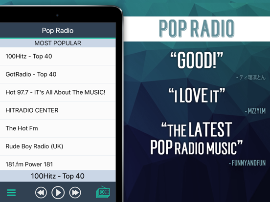 流行音乐电台 - 热播美国广播电台音乐 提供下列电台: ******* Most Popular ******* Top Hits Music - SKY.FM GotRadio - Top 40 AddictedToRadio.com Top 40 Pop Hits M Jackson Radio Radio D1SNEY Beatle - 181.FM Classic Hits - 181.FM 181.fm - Awesome 80's The Eagle (Classic) - 181.FM AddictedToRadio.com - 90s Pop Hits GotRadio - Today's Country Urban Jamz - SKY.FM ******* Only Hits ******* Absolute Hitz Absolute Radio 00 1.FM - ABSOLUTE TOP 40 RADIO AceRadio.net - The Hitz Channel AddictedToRadio.com - Top 40 Pop Hits Top Hits Music - SKY.FM ATHR - All The Hitz Radio GotRadio - Hot Hits GotRadio - Top 40 Hit Music Radio - The Best Variety of Hits! Hotmixradio Hits Hits 94: All The Hits! AudioVision: HitzRadio.com Planet Hits Radio - Just The Hits! Planet Hits Radio - Smooth Sounds Star 107 The Hits Channel Star104 Hit Music 100Hitz - Top 40 100Hitz - Hot Hitz AddictedToRadio - Today's Hits Power (top 40) - 181.FM Hits - Only Hits - M2 ******* Oldies Mix ******* Oldies - The 50s, 60s, & 70s - SKY.FM Radio 10 Gold 60s and 70s Hits ******* 70s Mix ******* The Eagle (Classic) - 181.FM AddictedToRadio - Soft 70's Hits Hit 70s 70s Hits SKY.FM AddictedToRadio.com - 70s Pop Hits Big R Radio 70s Pop All 70s Hits SKY.FM ******* 80s Mix ******* Retro Hits Todays Hits 80s & 90s 80s Rock Hits - SKY.FM 181.fm - Awesome 80's AddictedToRadio.com - 80s Lite Hits AddictedToRadio.com - 80s Hits 80's - Only 80's Hits - M2 ******* 90s Mix ******* Absolute 90s Hits - SKY.FM Big R Radio - 80s & 90s Pop Mix! AddictedToRadio.com - 90s Pop Hits 90's - Only 90's Hits - M2 ******* Rock Mix ******* All Pop Rock - ROCKRADIO.COM All Pop Rock - SKY.FM Indie Music Sampler Rock 40 (Rock & Roll) - 181.FM Pop Punk - ROCKRADIO.COM ******* Beat Mix ******* GotRadio - R&B Classics GotRadio - Urban Hits Classic Rap & Hip Hop - SKY.FM GotRadio - The Beat Urban Jamz - SKY.FM ******* Country Mix ******* GotRadio - Today's Country Highway 181 - Classic Country AddictedToRadio - Hit Kicker ******* International ******* UK Top 40 - 181.FM laut.fm/alive Antares FM - The Star laut.fm/back_in_time BESTRADIO BRASIL Estrella104 - The Latin Hits Channel laut.fm/radio-hot100 laut.fm/radiofunclub Top Latino Radio Club 1069 International Radio Radio Playstudio - Italy laut.fm/soundsystem ******* Various Hits ******* Accent FM Access Radio High Quality All4You Hitradio Always Quality Tunes QT FM Array.FM Pop Ashdown FM 192K US BATES MIXED UP BIGR THEHAWK BIGR THEMIX Elevate Radio Energy 103.7 Extrema FM 1.FM - FASHION TV RADIO And MORE... For more information, including Terms of Service & Privacy Policy, visit myindieapp.com. Thanks for listening! 请尽情享受!• Latest iOS Support • Bug Fixes & Improvements