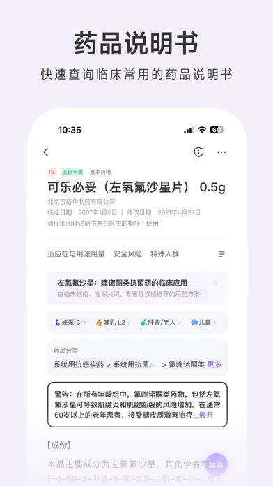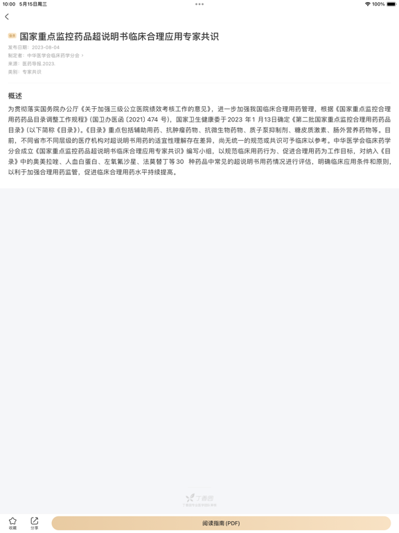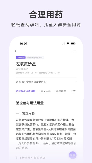 用药助手隶属于丁香园旗下,是为医药人士定制的「临床决策助手」,致力于辅助医药专业人员做出更规范、更安全的临床决策。 用药助手覆盖药品、疾病、指南、医学工具四大模块,数据来源于国内外权威文献、指南等,并邀请国内三甲医院医生参与数据生产生与审核,为专业医生提供靠谱的诊疗决策服务。 【应用特点】 300万+专业用户都在使用 1. 权威靠谱:甄选行业权威数据,收录全面、更新迅速; 2. 内容实用:一线临床医生参与研发,为中国医生量身打造; 3. 简单易用:海量信息化繁为简,支持随时随地快速查阅。 【核心服务介绍】 1. 药品信息:支持免费查询超 70000 份国内外上市药品说明书,覆盖国内 99% 的药品数据,并根据药监局药品信息实时更新。同时,包含 2000+ 药物成分(ATC 分类)的合理用药指导,包括用法用量(含国内外用法用量对比)、安全用药(含特殊人群用药调整、妊娠哺乳用药安全、药物警戒等)、药理毒理、患者教育等最受医生关注的用药知识。 2. 临床决策:4000+ 条临床常见疾病的诊疗决策支持,覆盖 90% 临床常见疾病。内容涵盖基础知识、诊断依据、治疗原则、控制目标等核心诊疗环节,并提供疾病的「药物治疗」信息查询,内容更实用,决策更安全。 3. 临床指南:收录 30000+ 国内外权威机构发布的指南、专家共识,支持快速检索、在线查看,以及 PDF 分享或下载。 4. 实用工具:包含肿瘤分期、相互作用、配伍禁忌、医学计算公式(800+)、临床路径、抗菌谱查询等,临床决策更高效。 【自动续费服务声明】 1. 订阅价格(以app内最新情况为准):连续包月 45 元/月、连续包年 348 元/年; 2. 付款:用户确认购买并付费后计入 iTunes 账户; 3. 自动续订:苹果 iTunes 账户会在到期前 24 小时内扣费,扣费成功后订阅按订阅周期顺延; 4. 取消续订:如需取消续订,请在当前订阅周期结束至少 24 小时以前,手动在 iTunes/Apple ID 设置中关闭自动续费功能;若在到期前 24 小时内取消,将收取订阅费用; 会员续费协议 https://3g.dxy.cn/newh5/view/rule/drugs_auto_renewal 用户协议 https://3g.dxy.cn/newh5/view/rule/drugs_userAgreement 隐私政策 https://3g.dxy.cn/newh5/view/rule/privacyPolicy_drugs 【免责声明】 丁香园用药助手(下称“平台”)致力于为临床医生提供相对及时全面的疾病、药品、指南等信息以辅助临床决策。 平台涉及的医学信息内容广泛,但这些内容不包含所有适当的诊疗护理方法,也未排除合理运用可获得相同治疗结果的诊疗、护理方法,亦不视为平台提供了任何医疗建议、诊断或治疗方法。关于任何特定诊疗程序的适当性,必须由医生根据患者个体表现出的所有情况做出最终判断。平台对于任何用户因使用或参考本平台内容而做出的任何判断或决定以及该等判断或决定直接或间接导致的任何后果不承担任何责任。 平台提供的部分内容源自互联网的资料信息或一些非规范性文件,初衷和目的是用于学术交流与讨论、补充临床诊疗过程中的信息及注意事项,并不意味着平台对前述内容有任何主观的认可或推荐。如果您认为我们的转载侵犯了您的权益,请与我们联系(联系邮箱:lawyer@dxy.cn),我们将在核实后5个工作日内予以删除处理。 平台会尽可能及时的、全面的收集展示最新的疾病、药品、指南等信息,但医药科学知识不断更新,其涵盖的信息也不断变化,可能导致部分信息缺失或滞后,我们无法保障平台提供的全部信息为当前最新最及时信息,请您谅解,也欢迎您向平台反馈、纠正平台上滞后、错误的信息,提出您宝贵的意见。优化了一些使用体验