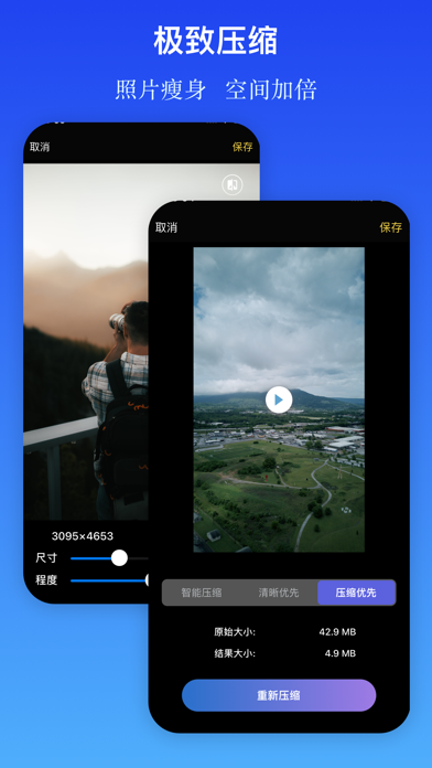 「Cleaner」是一款简单实用的照片管理,相册整理工具。它包括但不限于以下功能: ⊙ 照片清理 一键清理大文件、截图、无用、重复照片,彻底释放大量手内存空间! ⊙ 视频编辑 极致压缩,释放空间。众多视频、照片编辑工具,解放生产力! ⊙ 私密相册 加密保护,避免照片泄露 ⊙ 安全无风险 可在手机本地(离线)运行,不依赖服务器,带来更安全的使用体验 ⊙ 高效整理 手势快速整理,快速删除不需要的照片,随时将照片添加至指定相册 ⊙ 智能分类搜索 AI 智能图像分类,文字识别,快速搜索到你想要的照片 ⊙ 大文件定位 照片/视频按大小排序,快速释放磁盘空间 ⊙ 添加标签、笔记 对照片进行描述,留下属于你的回忆 ..... 【订阅说明】 确认购买并支付后,将通过您的iTunes账号自动续订。苹果iTunes账户会在到期前24小时内扣费,扣费成功后订阅周期顺延一个订阅周期。 如需取消续订,请在当前订阅周期到期前24小时以前,手动在iTunes/ApplelD设置管理中关闭自动续费功能。 试用期内,iTunes账户如不取消订阅,则会在试用期结束时自动开通订阅并扣款,未使用的证用时长在购买订阅之后将会自动作废。 本服务由您自主选择是否取消,若您选择不取消,将为您开通下一个计费周期的续费服务。免费试用机会每位用户仅可在首次订阅时试用一次。 隐私政策: https://humdrum-dew-ff1.notion.site/806416642f4145228c2f55c45f8ac029 用户协议: https://humdrum-dew-ff1.notion.site/accef0fa938e4728970618980270f341 「Cleaner」才刚刚起步,功能还待完善,有任何问题或者建议,欢迎联系我们。 联系方式:hitwhylz@163.com- 添加多图对比功能,选择困难症福音~ - 修复已知问题