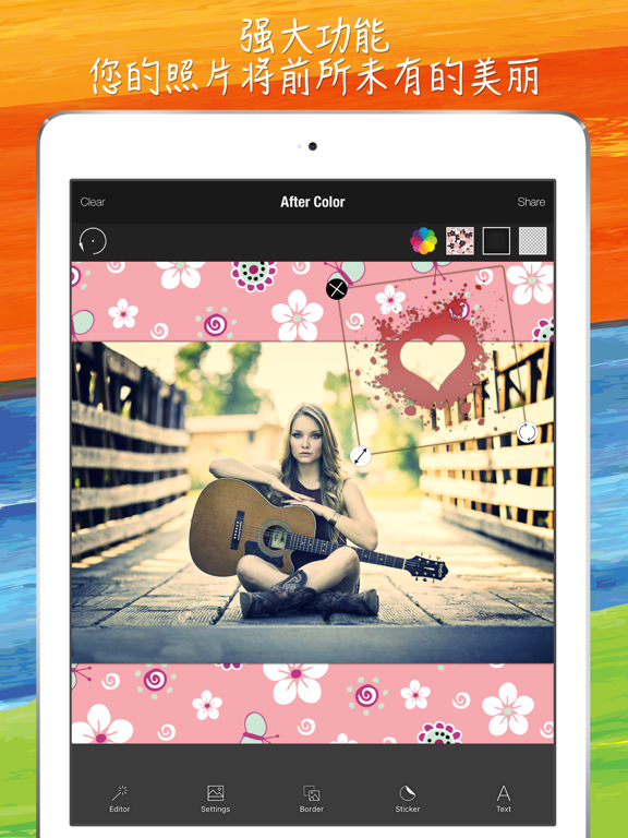 这款应用将简单的设计与功能强大的编辑器组合在一起,为您提供了您所想要的一切,让您的照片极致神奇。 我们的简单设计,搭配上功能强大并且活泼的工具,让您在几秒钟里就能得到到您想要的效果。 您的照片将前所未有的美丽。 特性: »大量高品质、高分辨率贴纸,可以与您作品结合,用手指来摆布 » 使用高清、风景、食物、肖像和夜晚模式增强照片 »添加令人惊艳的贴纸、边框,尽情挥洒创意 » 用“聚焦”或“暗角”功能让您照片的主体更加引人注目 »在照片上加入文字/ 标题非常容易 »先进的文本和照片编辑器 »独有的字体 » 使用去红眼和污点功能修正自拍照 » 使用牙齿美白功能让笑容更加灿烂 » 裁剪、旋转和拉伸您的照片 »自由变换照片使其最恰到好处 »移动 - 放大/缩小 - 旋转 »令人惊叹的照片fx滤镜 » 使用“修色”功能选择性移除和替换颜色 »改变边框颜色 » 使用“锐利”功能为照片添加戏剧性 » 修改亮度、对比度、高光和阴影 » 调节饱和度、色温、色调和褪色 »添加自定义的主题标签 »在Instagram上为您的照片上标上 #AfterColor 加入我们的社区 创造、分享和享受! 分享的不仅仅是社交网络上简单的照片,还有更多! 中文, 普通话, English, Русский, Türkçe, 日本語, 한국어, Español, Português, Français, Deutsch, Nederlands, Italiano, Norsk, Svenska. Web: http://www.climaxapps.com/ Facebook: https://www.facebook.com/climaxapps Vk: http://vk.com/climaxapps Twitter: @climaxapps Instagram: @climaxapps Gmail: climaxapps.com@gmail.com YouTube: http://www.youtube.com/climaxapps 仅用户为任何违反版权的情况负责,其中涉及共享的视觉内容、照片、视频、图片、绘图、引用、文本以及任何其它内容。 After Color 和 Melih ÖZDOĞAN概不负责。 下载此应用程序表示自动接受上述条件。Apple 已更新此 App 以显示 Apple Watch App 图标。 Thanks for using our app! Quick “Blur” button added on “Border” tab. Simply, you can use your photo as blurred background. New stickers, borders, fonts added. Some paid features are free (Corner rounding, user photo to background etc.) Every update of our app includes improvements for speed and reliability. Contact and review us to develop better apps. Follow & like our Facebook page. https://www.facebook.com/climaxapps Please review us on App Store. You can't imagine how important your thoughts. Best regards. Climax Apps Use #AfterColor join our community. Facebook: https://www.facebook.com/climaxapps