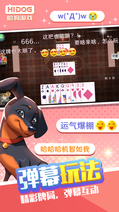 全新来袭!八年经典之作再升级,哈狗游戏将为你带来更加精彩的游戏体验! 【地道玩法,应有尽有】 覆盖各地区麻将扑克玩法,给你原汁原味的游戏体验。哈狗游戏内置了杭州麻将、发财麻将、义乌麻将、台州麻将、绍兴麻将、湖州麻将、浙江麻将、上虞麻将、萧山麻将、温岭麻将等20余款本地麻将游戏,以及十三道、双扣、斗地主、千变双扣、两帮、火拼干瞪眼、五家、关牌、红十、三扣一等特色扑克游戏。 【大厅对战,快速匹配】 各地麻友牌友齐聚一堂,高手云集,一键匹配,超爽对局。 【开房组局,尽享欢乐】 随时随地与好友在线开房组局,足不出户与好友组队搓麻打牌。欢乐时光,还可以免费开房,让快乐加倍。语音聊天室,让你免除打字麻烦,酣畅对局。 【亲友建圈,想玩就玩】 呼朋唤友,建立圈子,让彼此关系更近一步。在线群聊,一键开桌,任何时刻,想玩就玩。 【精美画面,酷炫动效】 精美的游戏界面,酷炫的动画特效,给你带来一场全新的视觉盛宴。3D 牌桌让你身临其境,华丽的出牌胡牌特效,给你沉浸式打牌体验。 【丰富活动,多重好礼】 精彩活动每天都有,免费赢奖好礼不停,游戏奖品拿到手软,参加比赛还能赢取额外超级大奖。 【特别声明】 本游戏仅供成年人(18+)娱乐,游戏内不涉及任何赌博功能,玩家不能通过游戏赢得真实货币。 《哈狗游戏》游戏内的一切游戏道具仅限本款游戏使用,通过游戏内比赛和活动获得的奖品全部由哈狗公司提供,与苹果公司无关,最终解释权归哈狗公司所有。【新增】 1.新增大众游戏掼蛋 2.新增湖州地方游戏湖州点点 3.修复iOS14崩溃,iOS9,iOS10支持优化