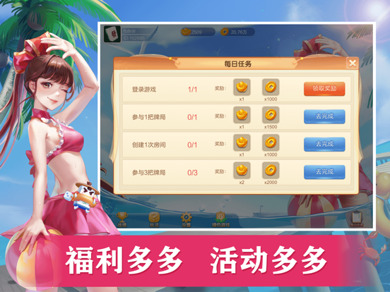 一款主打家人朋友之间消遣娱乐、线上组局的免费游戏。 游戏特色: 1、玩法非常丰富,包括推倒胡麻将、抠点麻将、拐三角麻将、晋中麻将、立四麻将、运城麻将、榆林打锅子、长治124、稷山扭叶子等麻将玩法和斗地主、跑得快、临汾斗地主等大众扑克玩法。麻将扑克一款app全都有,想玩哪个玩哪个! 2、每日任务奖励丰厚、免费畅玩停不下来。 3、创新的二人推倒胡、二人跑得快等二人玩法,只需二人就可开局,解决您人数不足不能游戏的烦恼。 4、金币场一人即可匹配对战,全真人匹配,切磋牌技,随时随地,想玩就玩!1.增加游戏加载进度条的百分比显示。 2.游戏引擎升级,提供更流畅的游戏体验。 3.修复部分已知bug。