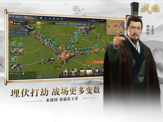 八年匠心打磨,这是你从未玩过的全新SLG! 一百多座真实城池,真实战国全图,一城一地皆血战,只有更激情,没有最激情! 八个国家,无数军团,国家机制让您以战功立身,以武威立命,军团社交让您在尔虞我诈的灭国之战中找到真正的肝胆兄弟,从一介布衣到横扫六合,从三五兄弟到交游天下,战国乱世,谁主浮沉? 除此之外,游戏中设立了妥善的个人保护,个人领地神圣不可侵犯,种田玩家可以尽情发展而不用担心惨遭屠城之祸,国家之战,自国家而始,至国家而止。 ——游戏特色—— 【即时国战】 PVP战斗允许双方全程手动操作,与其他战报游戏完全不同,真正的国战对抗! 【城池争夺】 守城者建设城防,屯驻军队;攻城者合围城池,断绝粮道,每一座城池,都是一场攻守对弈,图穷之时,唯有血战! 【运粮伏击】 兵马未动,粮草先行,粮草不足则士兵将会逐渐饥饿,作战之时战力大降。通过运粮保证己方城池粮草充足也成为一门学问,而伏击劫掠断敌粮道更是战争的艺术! 【灭国复国】 攻克敌国国都即可扫灭一国,随着灭国的进程,您甚至可以称公称王、最终称帝!而被灭国一方也会卧薪尝胆,攻克本国都城即可成功复国。 【多样策略】 多样化的战争方式,围点打援,坚壁清野,围魏救赵,声东击西,历上战例经典还原! 瑞游联动五年巨献,这战国,如你所愿! —特别说明— 在游戏《战国》中,用户登陆时可以选择“手机号码登录/账号登录/游客登录”,在ios设备上数据互通。用户在游戏中购买的游戏代币“金锭”仅限在本应用中使用。 隐私政策地址:http://www.reagame.com/notice.html 战国版本内容 一、新增功能 1、新手七日任务:为新玩家提供前期指导,增强新手体验。 2、武将调遣:增加隐匿调遣 二、优化内容 1、国战移动速度加速,减少移动时间 2、国战武将加速:合并5次加速为1次加速,并增加全部加速 3、国战立即复活:调整消耗,优化立即复活对攻城方回城补兵的不合理 4、装备图鉴:展示优化,未获得装备置灰显示 5、每日任务:活动排序优化 6、燕昭帝技能优化,调整全体技能增强+燕国部队谋攻增强 7、管仲装备共享优化,攘夷管仲增加玉具剑、管子专属 8、武将兵法激活及刷新,优化刷新机制从随机改为顺序 三、春节活动关闭 1、恢复金锭充值双倍 2、热销商城刷新消耗下调 3、新春集字 4、国战奖励双倍活动
