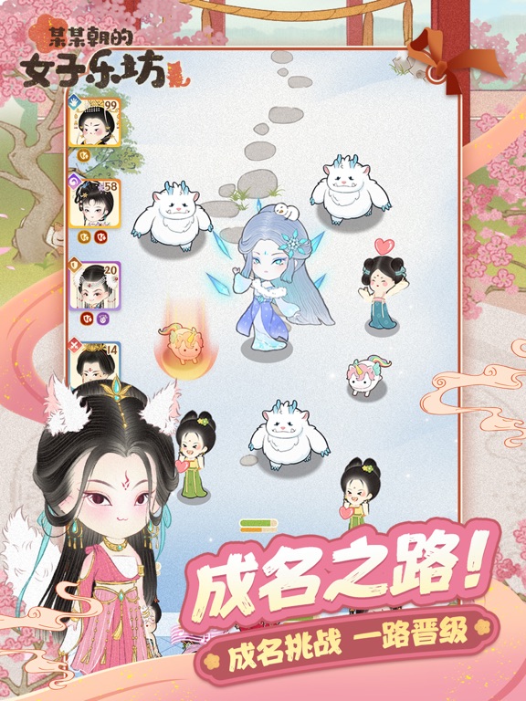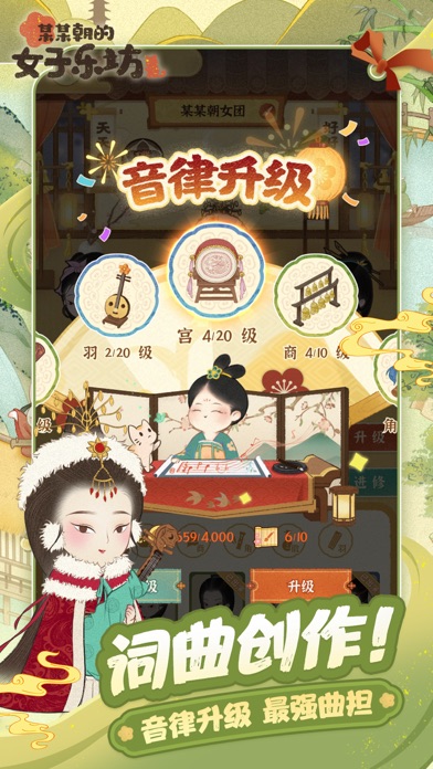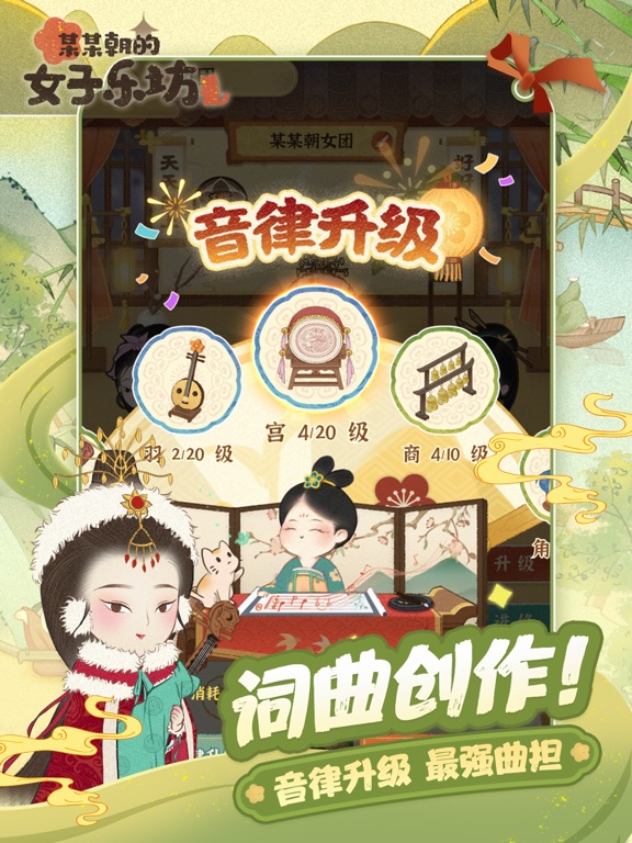 —游戏特色— 【打造女团】各色美人尽收麾下,培养我朝第一女子天团 四大美人、一代女帝、巾帼须眉、古今中外、众多美人各有千秋,小朋友才做选择,我们当然是全都要! 收集你最爱的美人,练习成团,文、武、乐、舞、画、颜、戏,全方面提升业务水平,作为某某朝第一女子天团,我们要有颜、有艺、还有才,然后惊艳所有人!! 【成名之路】剧情战斗一路相辅,晋级出道小团步步为营 乐坊竞技,并肩共进,成团竞技实力至上;同袍羁绊,执手前行,晋级之旅有笑有泪。努力的汗水终将铸成通向巅峰的成名之路。更多乐坊事件、选秀剧情等着各位坊主前来解锁!女子乐坊就拜托各位坊主啦! 【词曲创作】音乐关卡灵感迸发,升级音律培养最强曲担 宫商羽徽角,担位大不同,收集音律之书作词谱曲,架空千年,宋词元曲、现代未来,freestyle融汇集结,实力步步攀升,成就最强主C! 【经营乐坊】自由搭建乐坊布局,建造独一无二女子乐坊 玩家将在游戏中创建属于自己的女子乐坊,每个建筑都有独属于自己的特殊功能缺一不可,还有更多装饰布局随心打造规划、描绘乐坊蓝图,快来创造独属于你的女子乐坊。 【本色出演】编行程跑通告去选秀,名利双收登顶偶像Top 成团即扑街?大漏特漏!团队运营马上安排:歌曲录制、线下签售、直播营业、商业演出、综艺真人秀... ...行程安排从乐坊排到法(fà第四声)国啦! —关注我们— 热烈欢迎每一位热爱女子天团的坊主,一起来交流下大家的成名之路吧! 官方微博:某某朝的女子乐坊 官方Q群:605192577 感谢各位坊主大人的支持与关注!梨园[虞姬]返场,全新伙伴[子樱]亮相! 1、限定招生月上梨园返场,学员虞姬获取概率提升 2、限定新衣,学员皮肤「神栖花梦」系列返场 3、新增秋收装饰物——南瓜摊、桂花载酒、扬场 4、今日运势新阶段开启,每日祈福可获得金级学员沉鱼、蛇年头像框 5、梨园新韵,完成拼图即可获得百戏场限定皮肤 6、新伙伴同游-子樱开启,完成每日任务可以获得伙伴资源 7、戏中百相活动开启,登榜前十可获得戏曲主题新头像框「梨园风华」 8、乐弈雪原活动开启,虞姬、长今、嬉嬉演出时最终伤害提升 9、星光巡演活动开启,海量商务通告来袭,奖励限时翻倍 10、钱庄限时活动开启,钱庄利率提升,存储可获得更多和田玉/铜币 11、限时累充活动开启,活动期间累计充值达指定额度即可领取额外奖励 12、累消赠礼活动10月31日更新后开启,累计消耗和田玉达一定数量,可得金级伙伴 13、乐弈山林活动10月31日更新后开启,虞姬、白泽、林妹妹演出时最终伤害提升 14、成名之路10月31日-11月3日5:00开启掉落奖励翻倍 15、优化坊主们反馈的部分问题