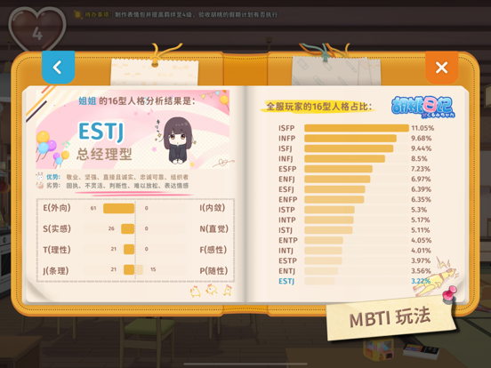 《胡桃日记》是一款与现实生活同步的日常陪伴类互动养成手游,玩家与从小一起长大的游戏主角七濑胡桃一起同住一个屋檐下,一起生活、相互陪伴,领教胡桃天马行空的清奇脑洞,体会一幕幕温暖治愈的温馨日常。 《胡桃日记》官方网站:https://hutaodiary.com/ 《胡桃日记》制作人邮箱:raphael@flora-vita.com 《胡桃日记》B站动态:https://space.bilibili.com/3537114346032000 1. “一起玩游戏”增加新游戏:星球大亨 2. 厨具列表增加厨具效果说明界面 3. 外出事件、美食图鉴解锁获得钻石奖励 4. 增加挑战手册任务类型:投喂“邻里”的邻居、烹饪成功 5. “邻里”的邻居投喂的卡点可以用高星级食物 6. 新的盲盒up池时装:“踏春”(3月16日-3月31日)、“木偶练习生”(4月1日-4月15日) 7. 新的常驻奖池时装:胡桃的T恤 8. 开放亲密度等级上限至40级 9. 更新第8章主线故事,36级开启 10. 新增愚人节时装“木偶练习生”的剧情 11. 新增一批外出事件:丰岛区、千代田区、中央区、墨田区、江东区、台东区 12. 新增一批新的谈心话题(13级~19级) 13. 增加小黑板显示能力数值的上限(多次点击即可查看) 14. 优化冰箱门上信封的显示角度 15. 优化胡桃快捷菜单,加大文字 16. 优化灶台的厨具红点显示 17. 展示的按钮移到快捷菜单 18. 修复付费购买的外出包包皮肤显示问题 19. 修复了黄昏时间段胡桃皮肤颜色的问题
