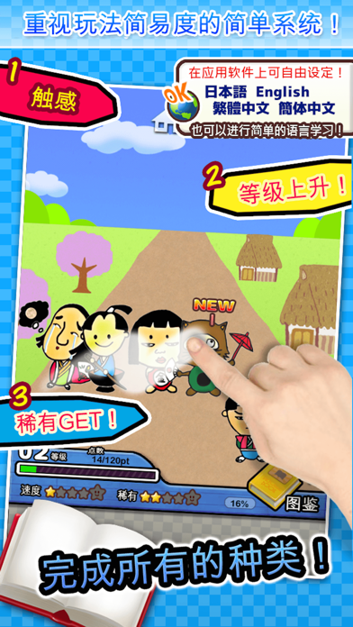 桃太郎,金太郎,辉夜姬...etc! 日本童话的人物聚集在这里!! 都了解了吗?一起来快乐的收集图鉴吧! 简单易懂的操作,因此从孩子到大人都能玩, 流行的,简单图鉴放置游戏系列 ▼虽简单,但能尽兴的放置游戏系列! 通过重视难易度的设计,可以尽兴玩到最后。 简单易懂的游戏设计,无论谁都能简单操作。 充满放置游戏那种收集乐趣! 一起来完成图鉴吧! 方法说明 1. 点击屏幕收集 2. 累积积分,闯关! 3. 收集所有珍贵图鉴,完成图鉴! ▼可进行详细的设定! 可在应用程序中自由进行日语/英语/汉语(繁体字/简体字)的切换, 所以也非常适合简单的语言学习! 背景音乐和按键音的设定也可以详细设定,所以充满乐趣! 简单图鉴放置游戏系列 ■其他系列的也请玩玩看哦! (C)ChoppoLabApple 已更新此 App 以显示 Apple Watch App 图标。 - iOS9 Support - Change Icon design