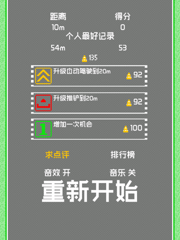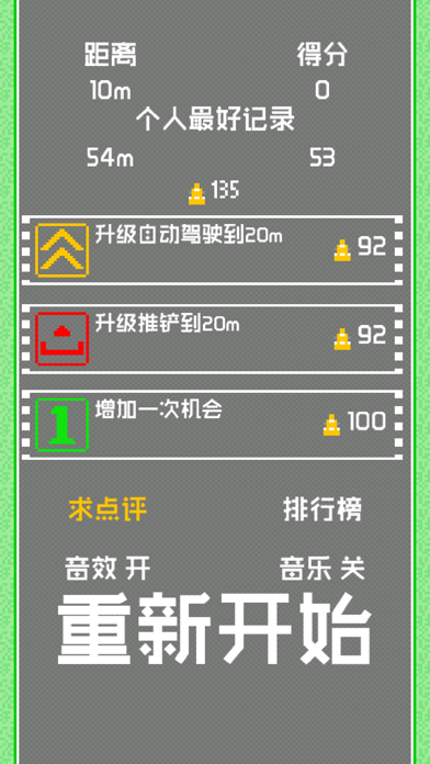 反应迟钝的人免进。不要说它坑爹,不要说它虐心,那只是你的反应速度不够快。 控制赛车只要左右动动手指。看似简单的玩法却蕴含着无限的玄机。不要说什么没用的话,快来游戏里一试身手,看你是眼明手快,还是反应迟钝。 超小的安装包,秒秒钟就下载好了。不要给退缩找借口,有胆就来试一试。 亮点: * 像素风格的游戏界面 * 8位效果的游戏音乐和音效 * 3种道具助你挑战极限 * 游戏只需动一根手指 * 快节奏的游戏,随时修练 * 通过排行榜与高手对决 music by playonloop.comApple 已更新此 App 以显示 Apple Watch App 图标。 细节优化