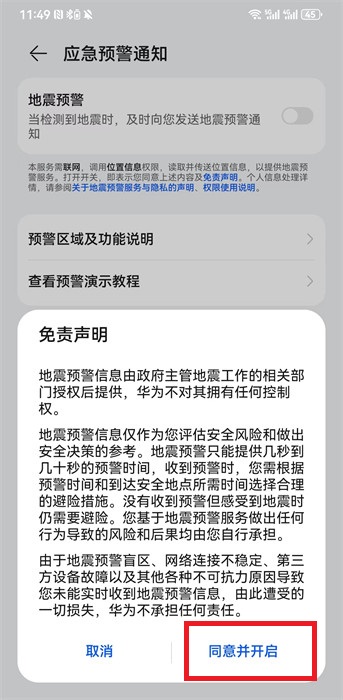 7、最后只需要查看相关的声明,然后点击【同意并开启】就可以开启该功能。
