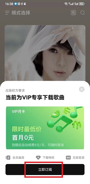 3、下载界面中可以看到下载歌曲是需要会员的,如果是会员可以直接下载,如果不是会员,可以领取会员;