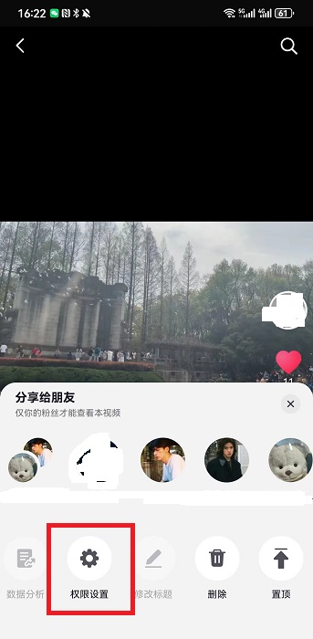 5、点击权限设置之后,我们可以看到【私密·仅自己可见】功能,点击把视频切换为此功能即可隐藏视频,不被其他人看到。