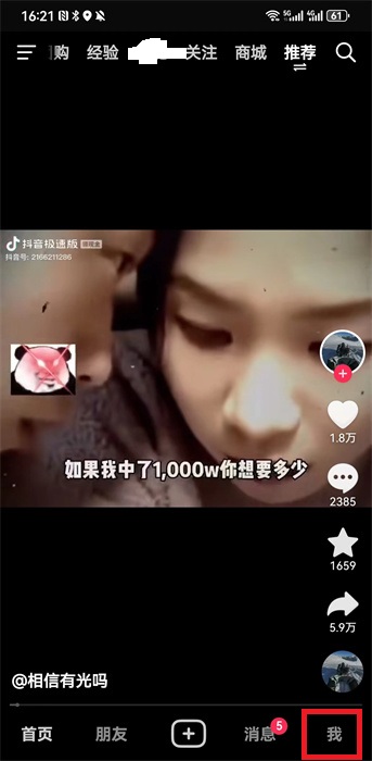 1、打开抖音,在抖音的视频播放界面中点击右下角的【】这样就可以进入到个人界面,就能看到自己所有的作品;