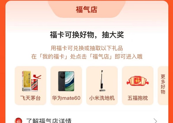 3、福气店福卡兑换:通过福气店,把我们没有用完的福卡直接兑换成好礼,这样也可以获得不错的奖励,让我们拥有更多的好物礼品。