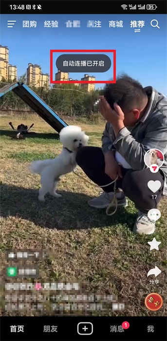 3、开启该功能之后就可以会到视频播放页面,可以在上方看到提示语就是【自动连播已开启】,就可以正常使用自动连播功能,当前的视频播放完毕之后就会自动跳转到下一个视频,如果是用手刷视频也可以不受影响,正常的自动连播,如果想要关闭,也是这个操作方式。