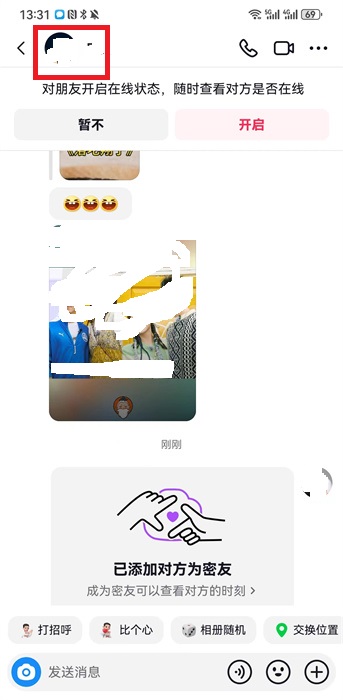 2、在消息列表之中找到设置为密友的好友,点击好友进入到聊天界面;